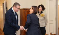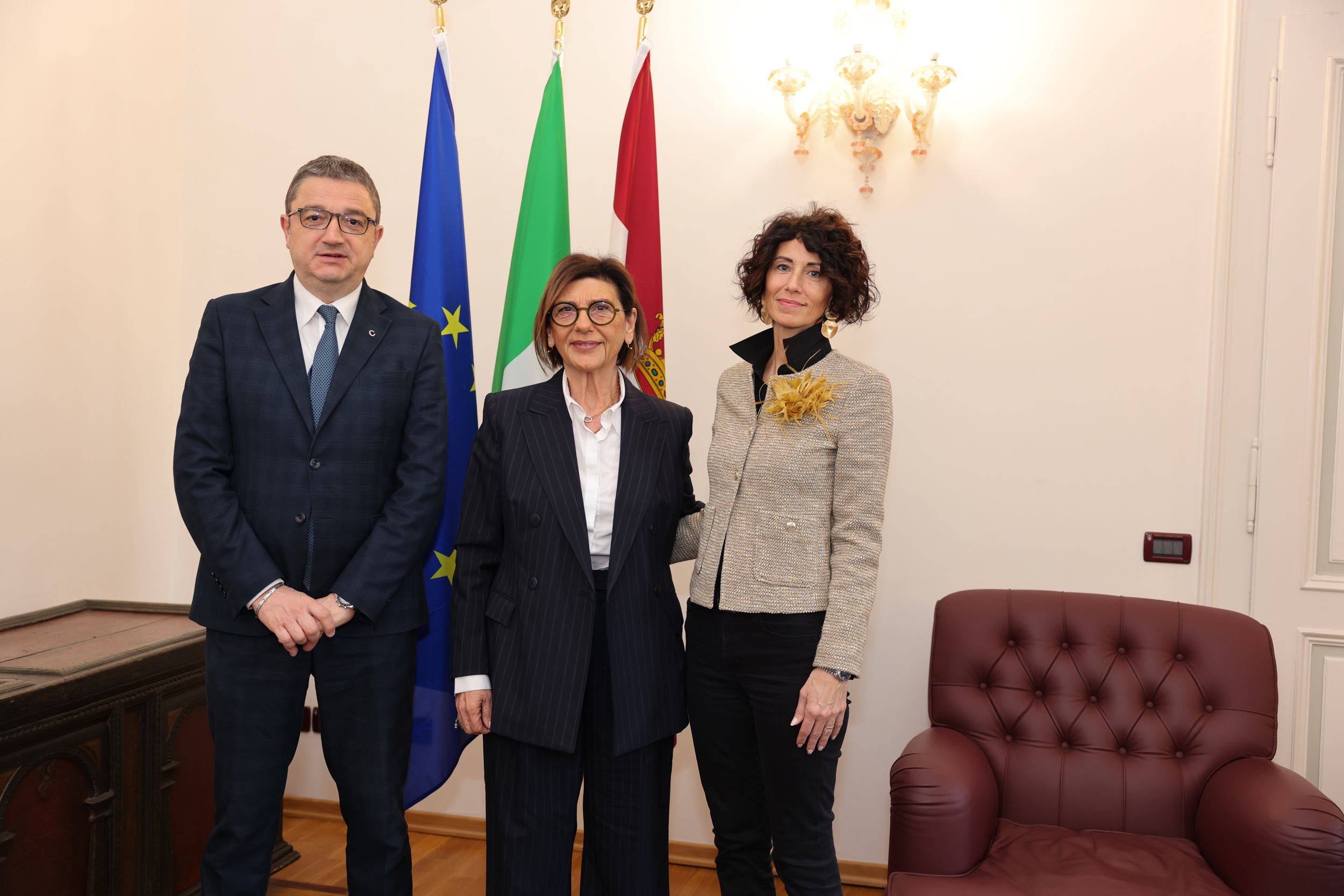 Prima della cerimonia Tina Montinaro è arrivata nel palazzo sede di Piazza Dante accompagnata dalla dirigente scolastica dell’ITT Buonarroti Tiziana Rossi e dalla docente referente del progetto legalità dello stesso istituto Lucia Sciumbata. Accolta dall’assessore provinciale all’istruzione e cultura Francesca Gerosa, che nel salutarla ha sottolineato l’importanza dell’educazione alla legalità nel contesto della scuola trentina, la signora Montinaro è stata quindi ricevuta dal presidente della Provincia autonoma di Trento Maurizio Fugatti. All’incontro hanno preso parte anche lo stesso assessore Gerosa, il direttore generale della Provincia Raffaele De Col, il Commissario del Governo Isabella Fusiello e il vicario del Questore di Trento Salvatore Anania.