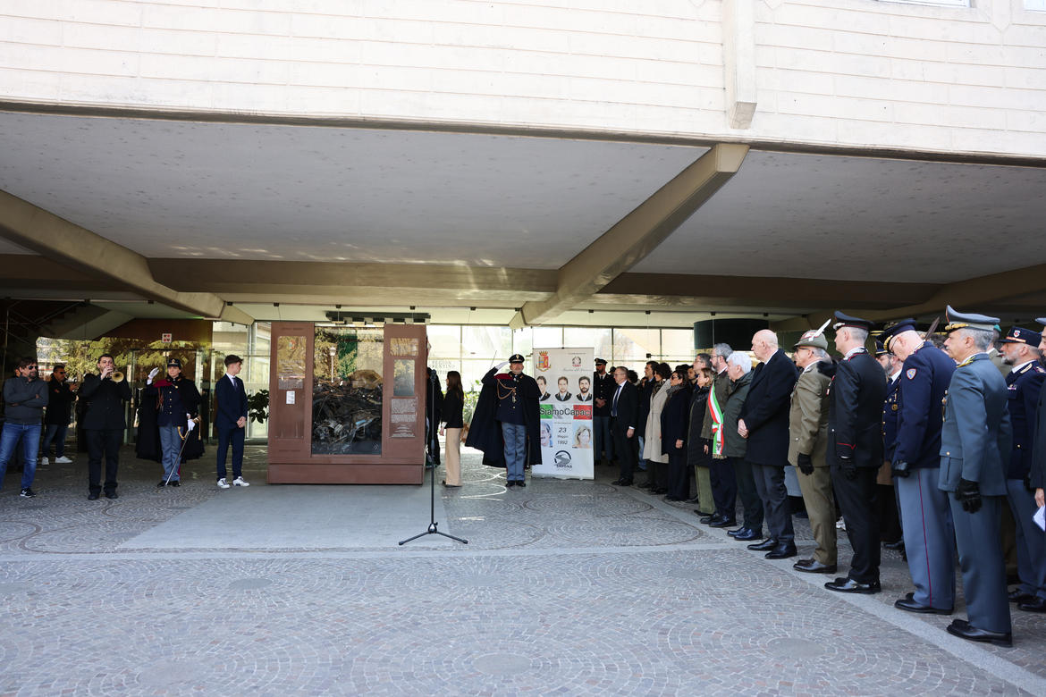 L’assessore Gerosa ha quindi spiegato come, questa teca, sia “qualcosa che ci interroga: ci chiede infatti di non restare indifferenti e ci inchioda alle nostre responsabilità quotidiane. Ci chiede, mentre guardiamo la nostra immagine riflessa sul vetro, cosa stiamo facendo oggi per la legalità e la giustizia. Giovanni Falcone ci ricordava che ‘se vogliamo combattere efficacemente la mafia, non dobbiamo trasformarla in un mostro né pensare che sia una piovra o un cancro. Dobbiamo riconoscere che ci rassomiglia’. Ci rassomiglia nel piccolo seme del sopruso, di un atto di bullismo, di una omertà, di un silenzio colpevole, del disinteresse verso il prossimo. È solo riconoscendola che possiamo sconfiggerla”, ha concluso l’assessore, invitando i ragazzi presenti a rispettare sempre le forze di dell’ordine che sacrificano la propria vita per la nostra sicurezza.