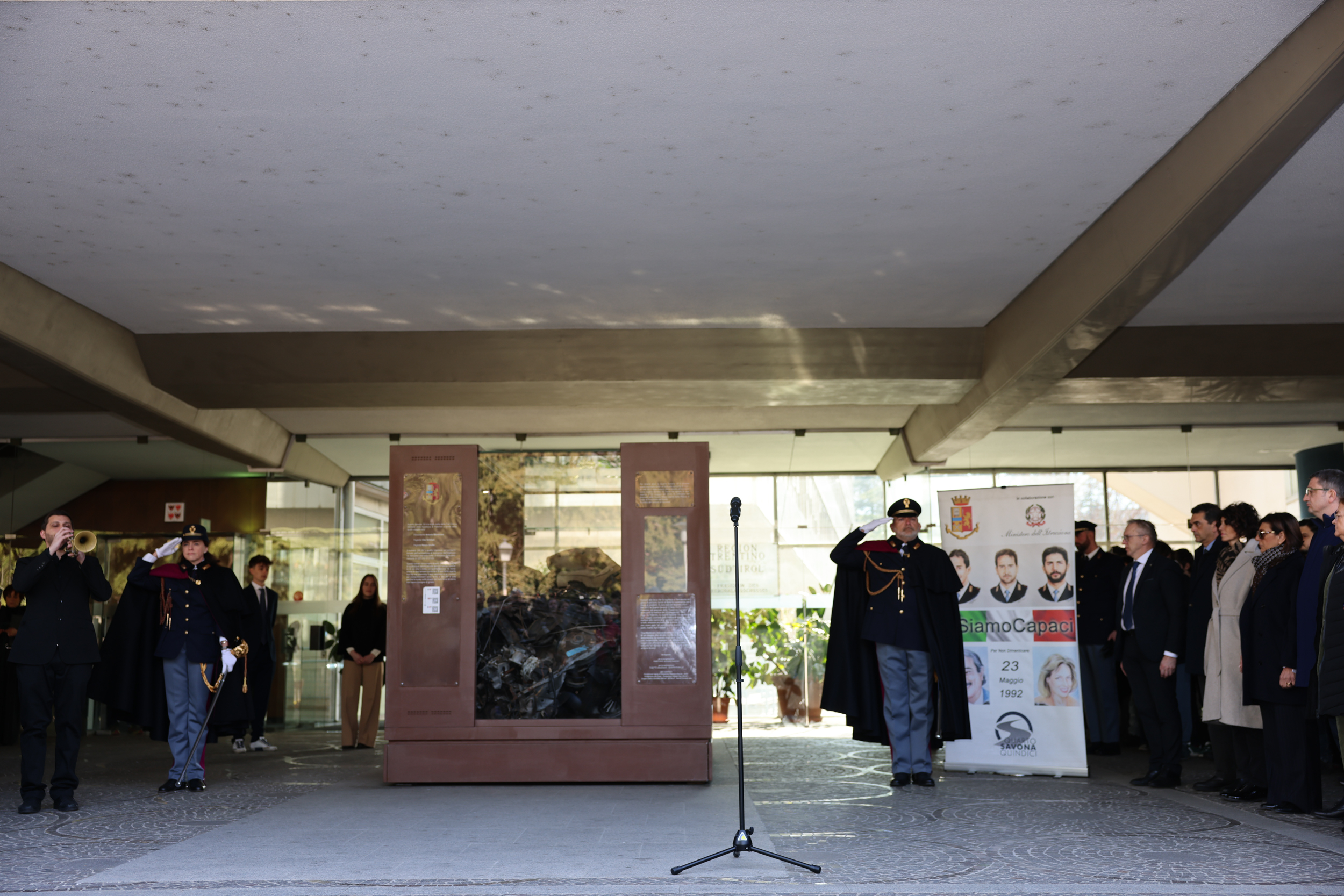 L’iniziativa rappresenta un momento di riflessione collettiva e un richiamo al valore dell’impegno antimafia, portato avanti anche attraverso la testimonianza diretta di Tina Montinaro, vedova di Antonio Montinaro, agente della scorta del giudice Falcone: “Chi pensava di annientarci e di fermarci ha preso. Dopo quasi 34 anni da quel terribile giorno – così Tina Montinaro nel suo toccante intervento - la Quarto Savona continua a camminare. In questa teca non ci sono solo i resti di una macchina, lì dentro ci sono i resti di Antonio, di Rocco e di Vito, gli agenti che in quel momento stavano facendo semplicemente il loro dovere; stavano proteggendo il loro magistrato. E quando in qualsiasi posto d’Italia succedono cose del genere, dobbiamo interrogarci perché significa che abbiamo perso tutti”. Quindi rivolgendosi in particolare ai numerosi studenti presenti ha sottolineato: “Ora sta a voi fare in modo che cose del genere non accadano più, io confido in voi. Grazie a tutti per la presenza e per l’affetto che mi state dimostrando”.