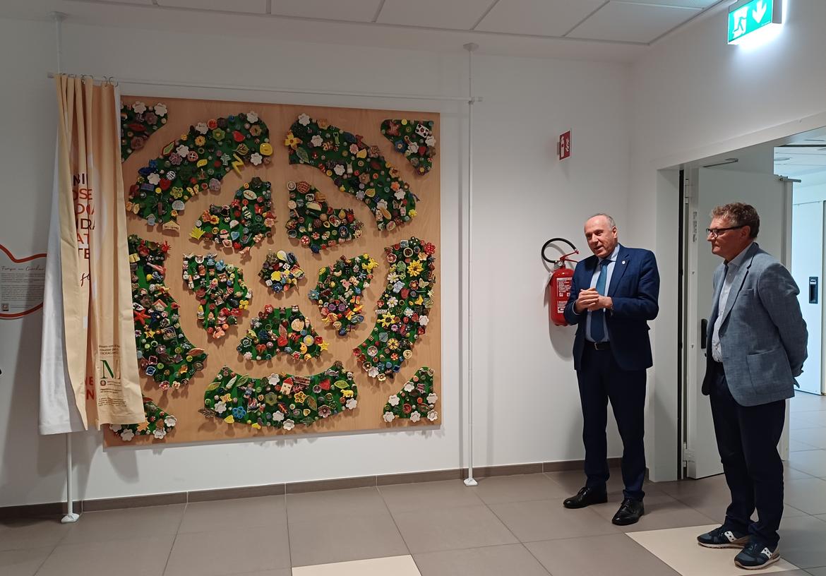 “Fiorisce un Giardino” è la prima opera collettiva realizzata dai bambini in cura presso il Centro di protonterapia. L’installazione riunisce circa 1000 manufatti in ceramica, modellati in forma tridimensionale e donati spontaneamente dai piccoli pazienti. Ogni creazione è l’espressione autentica e non verbale del loro mondo interiore, che trasforma il percorso terapeutico in un messaggio di speranza.