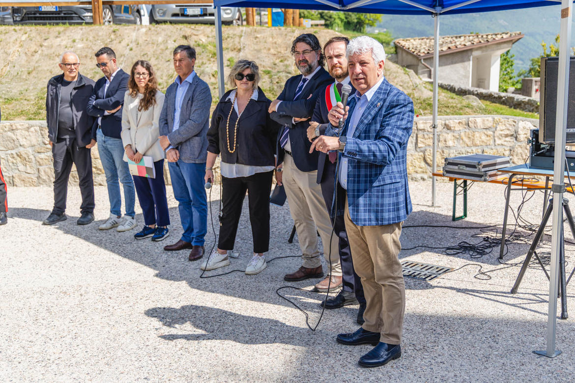 I lavori hanno visto il posizionamento dei sottoservizi (acque bianche e nere, acqua potabile, irrigazione e predisposizione dell’impianto d’illuminazione) collegati ai pozzetti predisposti precedentemente a cura del Comune; la posa delle cordonate in calcestruzzo, del sottofondo in ghiaietto e della pavimentazione in mattonelle autobloccanti per il parcheggio; la realizzazione di un muro in cemento rinforzato e rivestimento in pietre; il rialzo del muretto esistente con calcestruzzo armato e pietrame doppia faccia a vista, verso il camminamento che porta al cimitero; la realizzazione del massetto in calcestruzzo armato con rete elettrosaldata, la posa delle lame di bordura in acciaio corten e della pavimentazione in calcestruzzo architettonico tipo Levocell per i percorsi pedonali, per la “piastra” polifunzionale e per la scala. Inoltre sono stati posati due tavoli con relative panche, un cestino e sono state installate le staccionate in legno di larice e un cancelletto in legno.