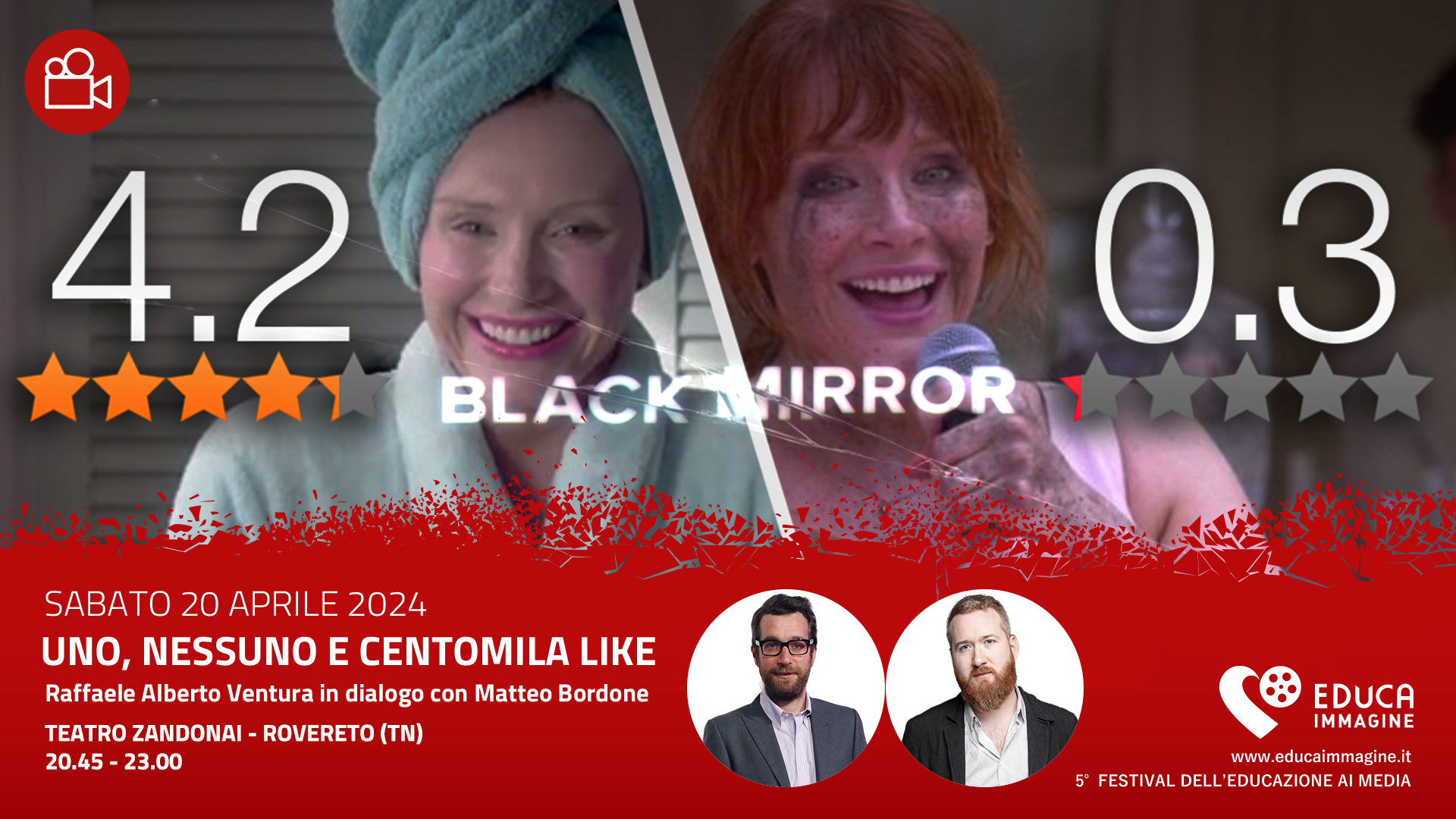 La protagonista di “Caduta Libera”, puntata cult della serie TV "Black Mirror", ci parla di un mondo che forse è vicino a noi più di quello che immaginiamo. I media sono oggi i nostri specchi digitali e l’immagine che gli altri hanno di noi è sempre più legata alla comunicazione. Ma quali sono le regole del gioco per gestire la propria reputazione online e offline? Quali nuovi comportamenti e convenzioni sociali si stanno affermando tramite l’uso dei media?Dopo la proiezione, Raffaele Alberto Ventura, saggista ed esperto di marketing culturale, ne parlerà al Teatro Zandonai con Matteo Bordone giornalista, podcaster e autore televisivo, per provare a capire chi siamo diventati nell’epoca dell’industria dei like.