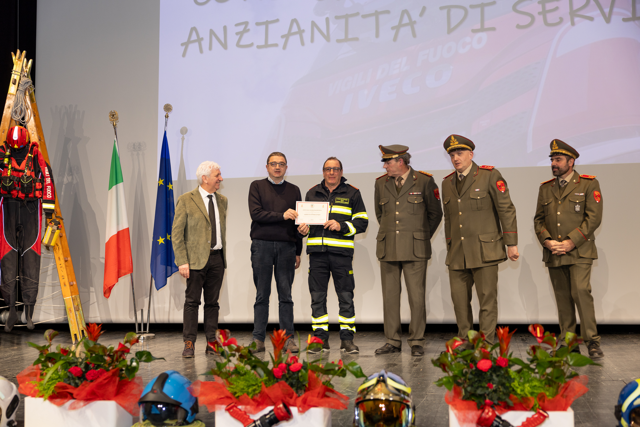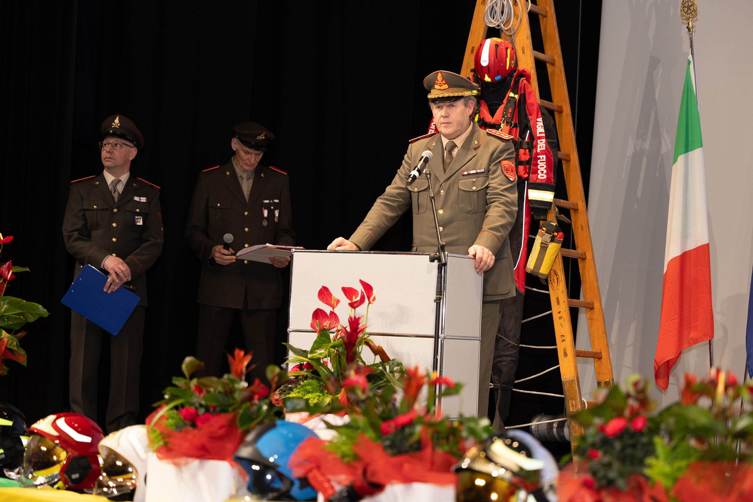 L’evento è iniziato all’aperto, con l’inaugurazione ufficiale dei nuovi mezzi a disposizione del personale e la benedizione da parte di Padre Nicola. Si tratta di una nuova autoscala, in dotazione al Corpo di Rovereto, e una cisterna per il trasporto di acqua potabile con una capacità di 12mila litri, in dotazione al Corpo di Volano; quest’ultima è stata acquistata grazie al finanziamento della Comunità della Vallagarina. La nuova autoscala va a sostituire quella che era già in dotazione a Rovereto e che ora è stata messa a disposizione del Corpo di Folgaria: andrà ad operare sull’altipiano e nei territori confinanti. La cerimonia è proseguita all’Auditorium con la consegna delle benemerenze e i diversi interventi.