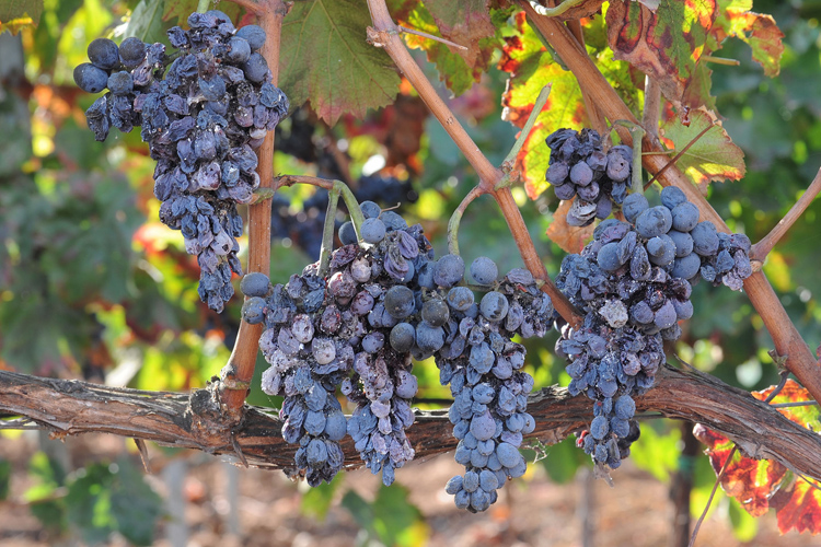 Grappoli maturi di Nero d'Avola danneggiati da P. ficus