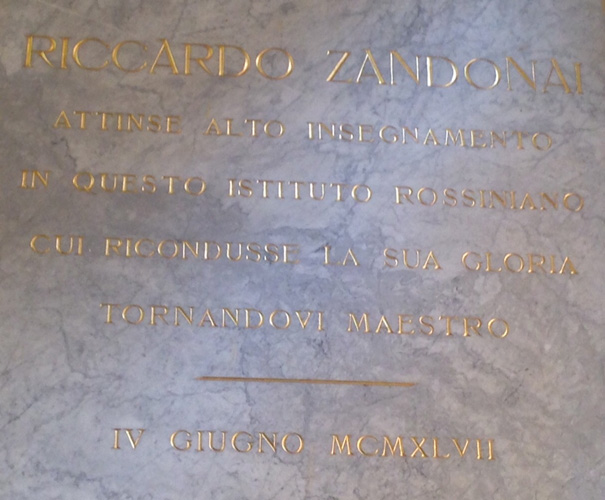 Conservatorio Rossini di Pesaro: epigrafe dedicata a Riccardo Zandonai