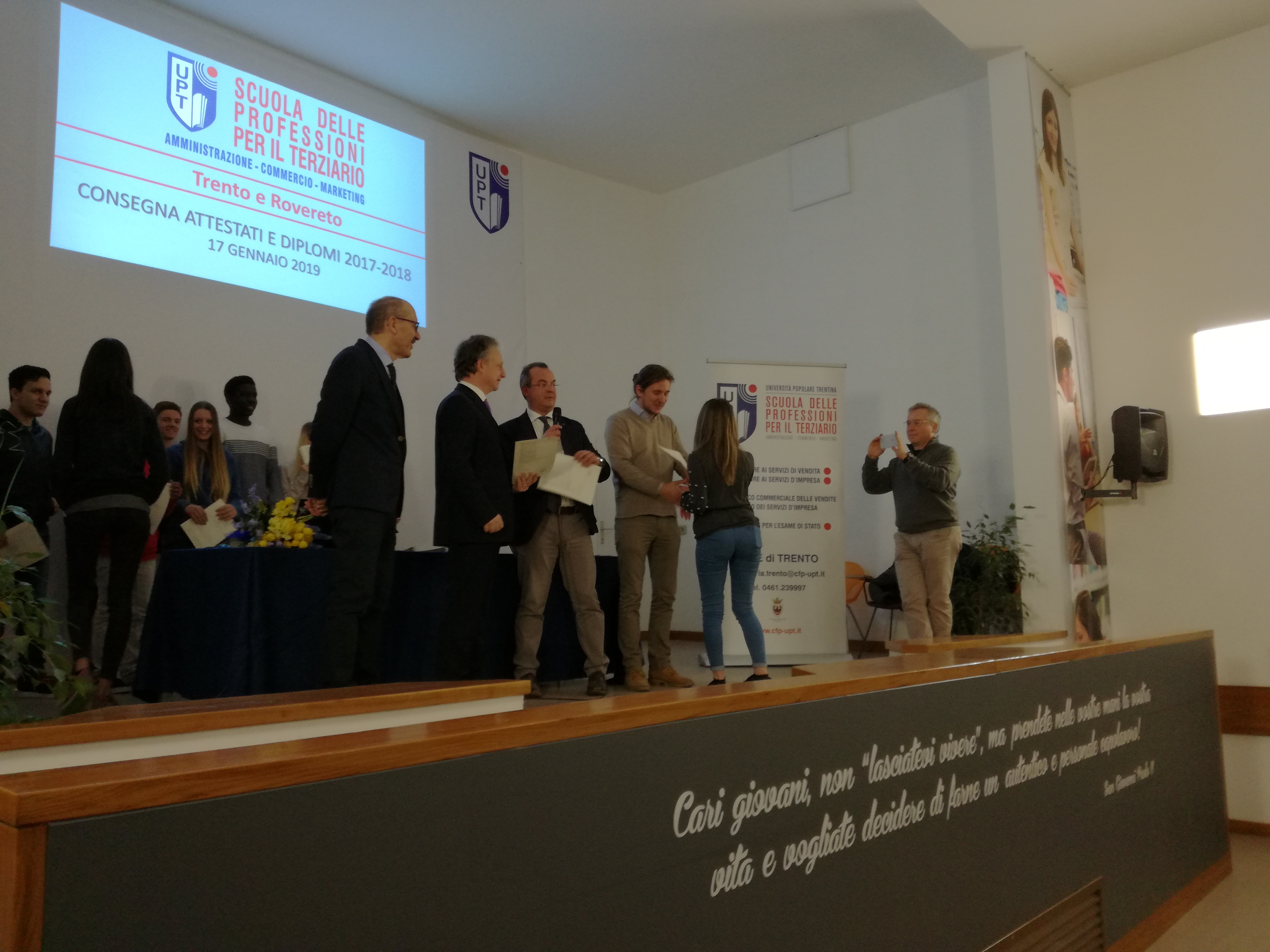 L’Università Popolare Trentina è un’istituzione di lunga data: sorta a Trento nell’immediato dopoguerra, si è poi sviluppata creando il Centro di Formazione Professionale, il quale oggi è un’istituzione formativa paritaria che opera, nelle scuole di Trento, Rovereto, Arco, Tione e Cles. Il CFP-UPT si occupa di istruzione e formazione professionale nel settore terziario, quindi commerciale e dei servizi (dalla gestione all’amministrazione contabile, all’utilizzo delle nuove tecnologie informatiche e della comunicazione), con circa 900 ragazzi iscritti e proposte formative sono in continua evoluzione; dal settembre 2014 ha assunto la denominazione di Scuola delle Professioni per il Terziario.