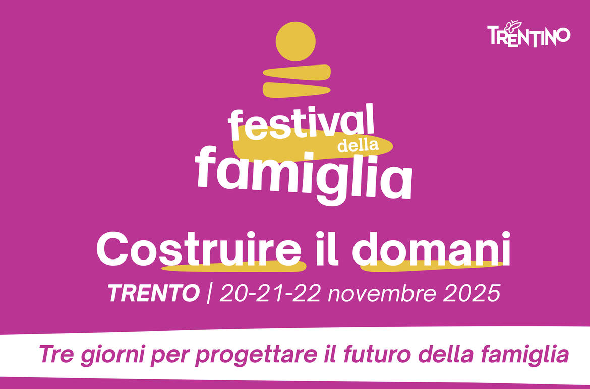 Il programma completo, unitamente alle modalità di iscrizione e partecipazione, sarà presto reso disponibile sul sito ufficiale del Festival festivaldellafamiglia.eu e sul sito dell’Agenzia per la coesione sociale www.trentinofamiglia.it