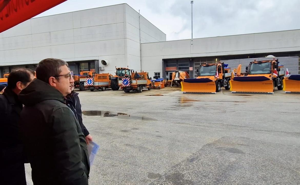 Curzel e i rappresentanti di Mercedes Benz e Aebi Schmidt, le aziende aggiudicatarie rispettivamente della fornitura di mezzi ed allestimenti, hanno illustrato le specificità tecniche degli Unimog U427, automezzi fuoristrada multifunzione da 14 tonnellate progettati per affrontare le condizioni tipiche del territorio trentino: valichi alpini, carreggiate strette, pendenze marcate, curve serrate e condizioni invernali caratterizzate da neve e formazione di ghiaccio.