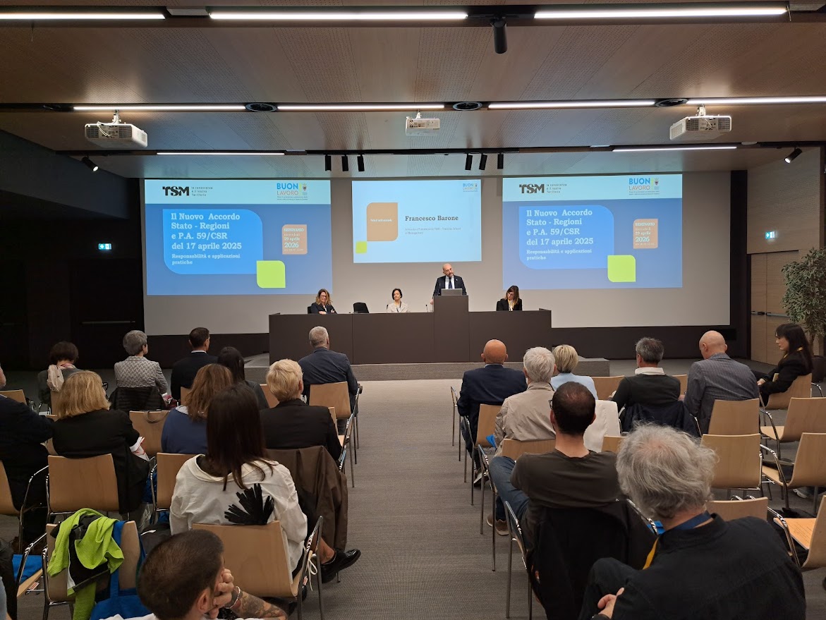 “La sicurezza sul lavoro – ha detto il presidente di TSM, Francesco Barone, non è un semplice adempimento formale o tecnico, ma una questione di cultura. Fare sicurezza sui luoghi di lavoro significa dare attuazione a quel principio lavoristico che pervade la nostra Costituzione, fin dal primo articolo. Ma non si può pensare a un diritto dovere al lavoro se non si garantisce la sicurezza dei lavoratori e delle lavoratrici. Il nuovo Accordo - ha precisato Barone - concentra l’attenzione sull’effettività di tale tutela. Il diritto alla sicurezza sul lavoro esiste e incide sulla società solo se la tutela è realmente effettiva e questo principio deve informare l’intero sistema giuridico ed economico”.