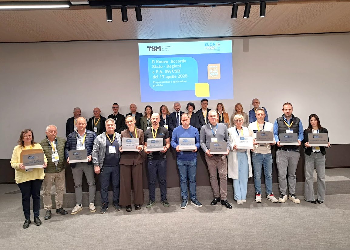 La cerimonia di premiazione del Premio Impresa Sicura ha concluso una mattinata di lavori che ha voluto approfondire i principali aspetti relativi alla formazione in materia di salute e sicurezza sul lavoro in relazione alle disposizioni previste dal nuovo Accordo Stato-Regioni del 17 aprile 2025, che entrerà in vigore dal 24 maggio. Il seminario, promosso da TSM -Trentino School of Management con il Servizio lavoro della Provincia autonoma di Trento, ha inteso fornire ai partecipanti un pacchetto di conoscenze sulle responsabilità dei datori di lavoro, sugli aspetti applicativi e sulle modalità previste dal nuovo Accordo e una definizione di modelli per la verifica degli apprendimenti e delle ricadute della formazione sul lavoro.