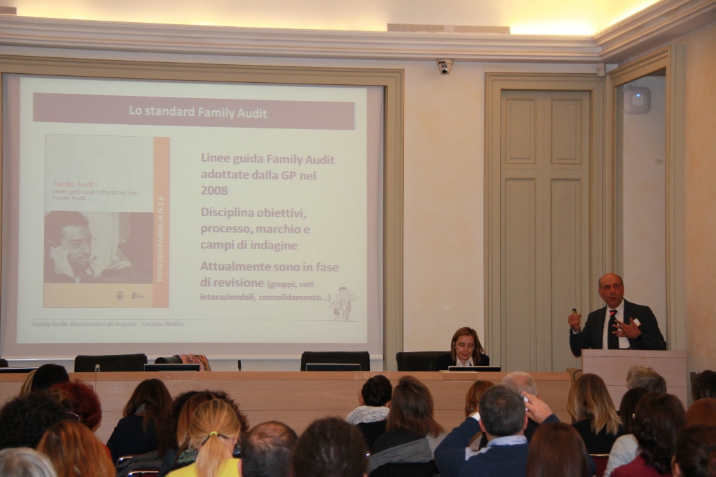 Il Family Audit è stato ideato dall'Agenzia per la famiglia, la natalità e le politiche giovanili della Provincia autonoma di Trento ed è stato promosso su scala nazionale dal Dipartimento per le Politiche della Famiglia della Presidenza del Consiglio dei Ministri, e il convegno di oggi è stato pensato come un momento di condivisione di best practices sul tema del work - life balance.