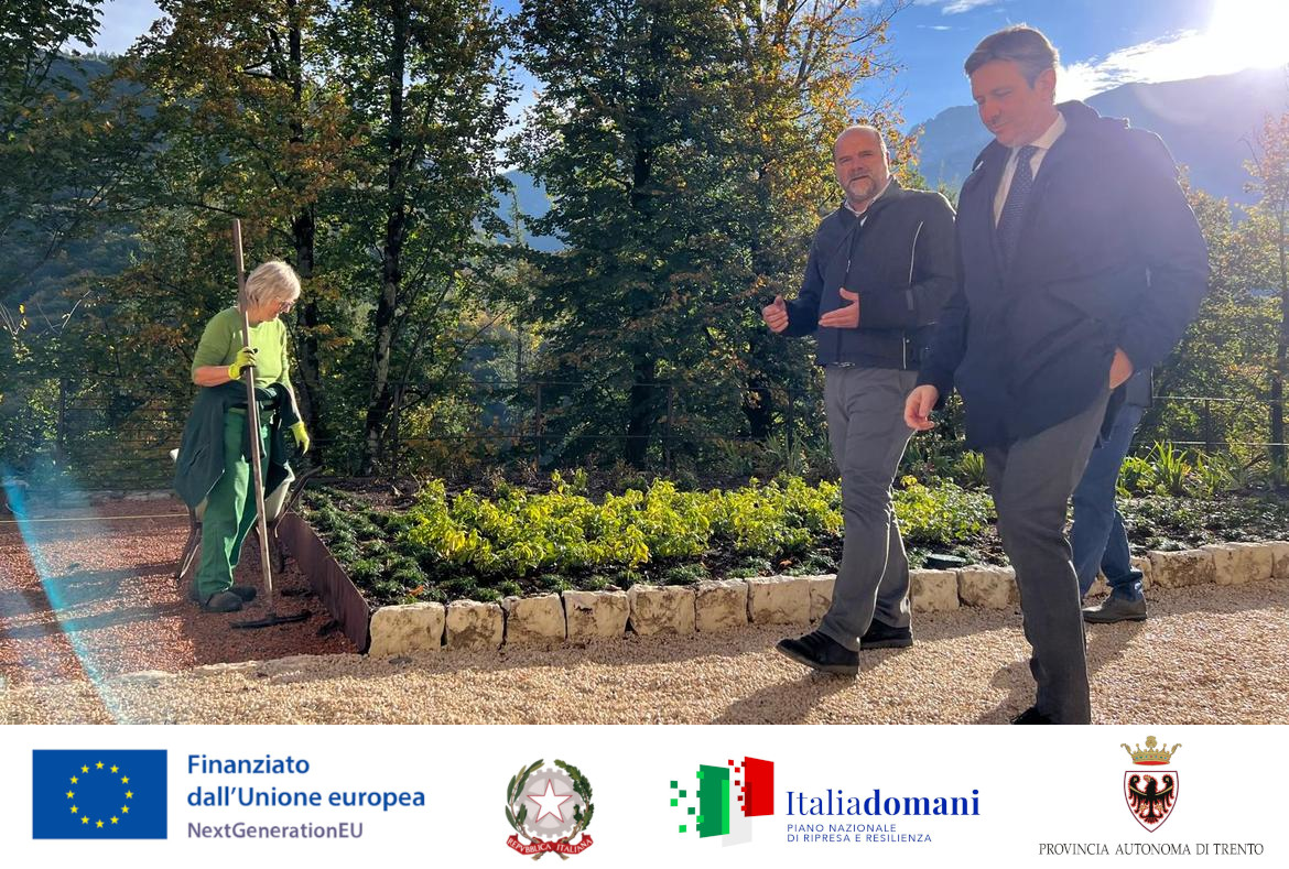 Oltre 12mila metri quadri di nuova superficie aperta al pubblico negli spazi esterni di Castel Thun: il giardino nel campo dei tornei, un orto storico con piante scelte secondo uno studio storico e botanico che ha portato a definire una zona coltivata nel corso dell'Ottocento e un’area dedicata suddivisa fra la “cura dell’anima”, l'"alimentazione" e la "cura del corpo". Il maniero si sta rinnovando grazie ad un importante intervento finanziato con il Pnrr, che ha riguardato anche il restauro dell'antica ghiacciaia, il consolidamento delle mura ad est e la sistemazione della “Torre della polvere”, dove sono stati ricavati degli spazi dedicati al personale di custodia e della cura del verde. Ed è stato dedicato proprio all’incontro dei circa 20 operatori assunti nell’ambito del Progettone, la visita che l’assessore allo sviluppo economico e lavoro della Provincia, Achille Spinelli, ha svolto stamani nello splendido maniero della Val di Non. “Siete ambasciatori della bellezza, il volto gentile che accoglie gli ospiti, le braccia che garantiscono il mantenimento di questi luoghi, la mano che accompagna chi intende scoprire i nostri gioielli dell’arte” sono state le parole dell’esponente dell’esecutivo incontrando i lavoratori, affiancato - tra gli altri - dal dirigente del Servizio per il sostegno occupazionale e la valorizzazione ambientale Maurizio Mezzanotte, dalla direttrice Laura Dalprà e dal dirigente del Servizio tecnico Adriano Conci del museo del Buonconsiglio, e dal direttore del Consorzio lavoro ambiente Luca Laffi. Saranno sempre gli operatori del Sova ad occuparsi della sistemazione delle aree di accesso a Castel Thun e di un nuovo parcheggio a servizio dei visitatori.
