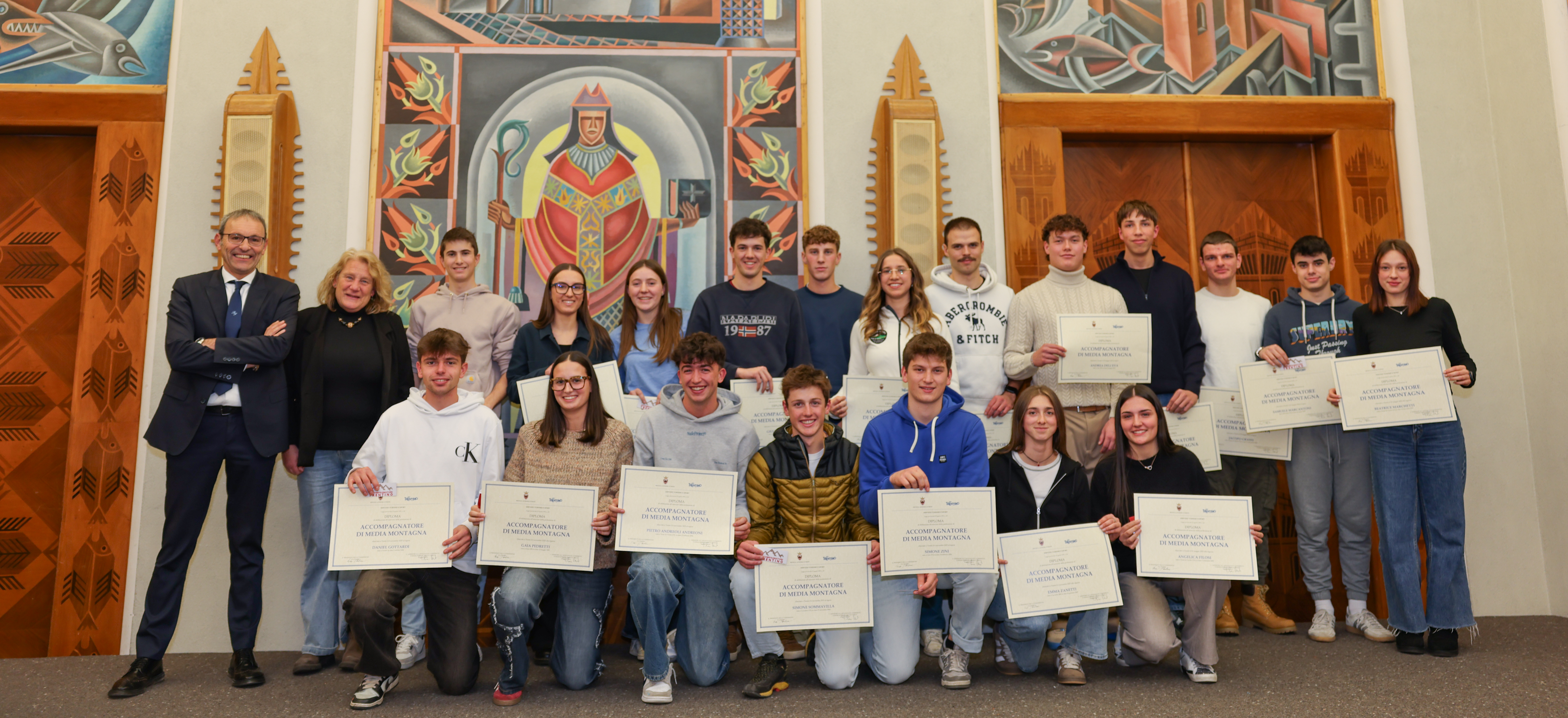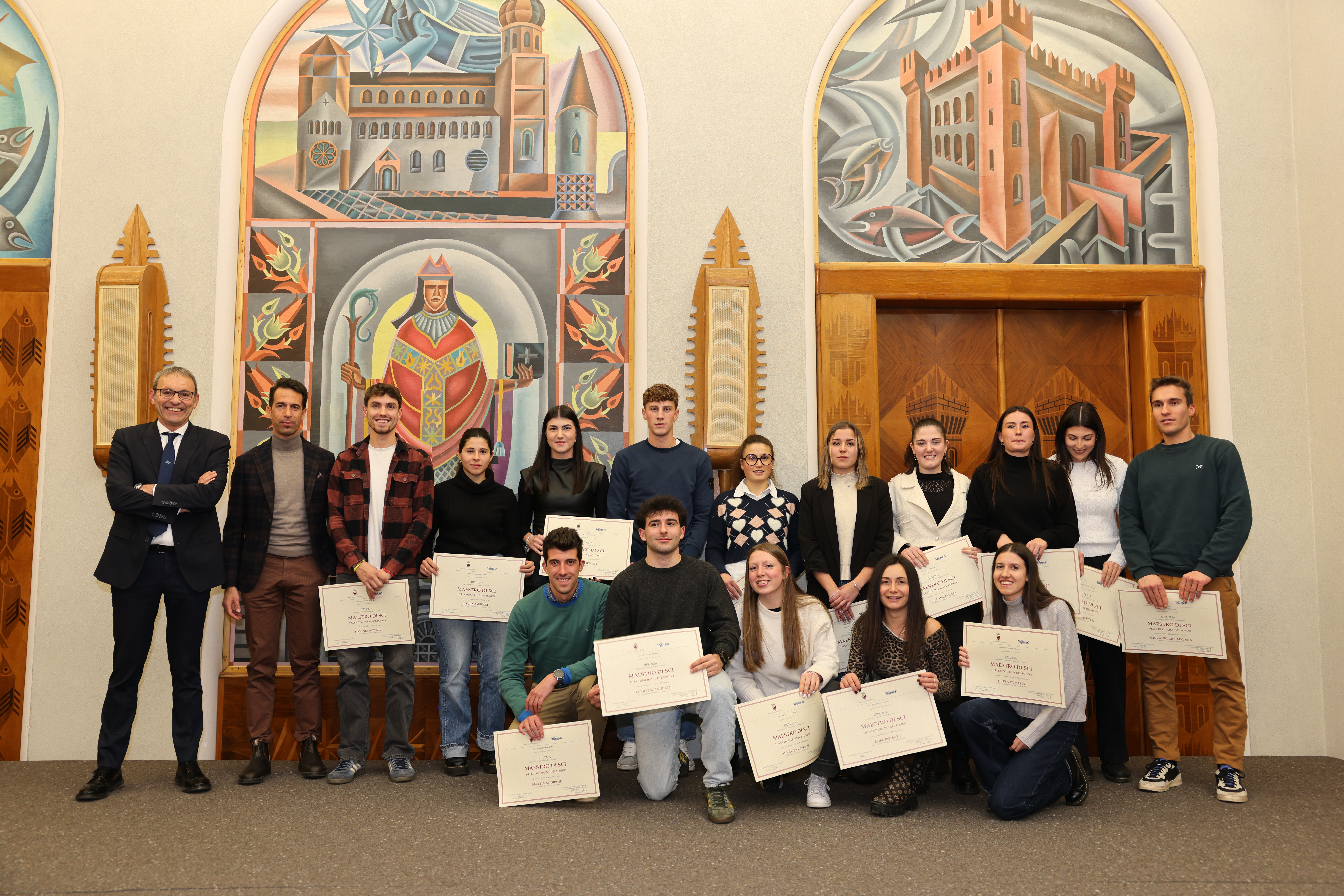 Alla cerimonia, moderata dalla direttrice dell’Ufficio provinciale ricettività e professioni turistiche, Eva Dandrea, sono intervenuti anche il dirigente generale del Dipartimento artigianato, commercio, promozione, sport e turismo, e dirigente del Servizio turismo e sport, Romano Stanchina, il presidente del Collegio dei maestri di sci della provincia di Trento, Mario Panizza, il presidente del Collegio delle guide alpine del Trentino, Gianni Canale, il presidente dell’Associazione maestri di sci del Trentino, Andrea Sini, la presidente dell’Associazione accompagnatori di media montagna, Maria Assunta Stolcis, e la referente dell’Istituto di istruzione “Lorenzo Guetti” di Tione di Trento, Antonella Moratelli. Erano inoltre presenti i componenti delle commissioni esaminatrici per le tre discipline.