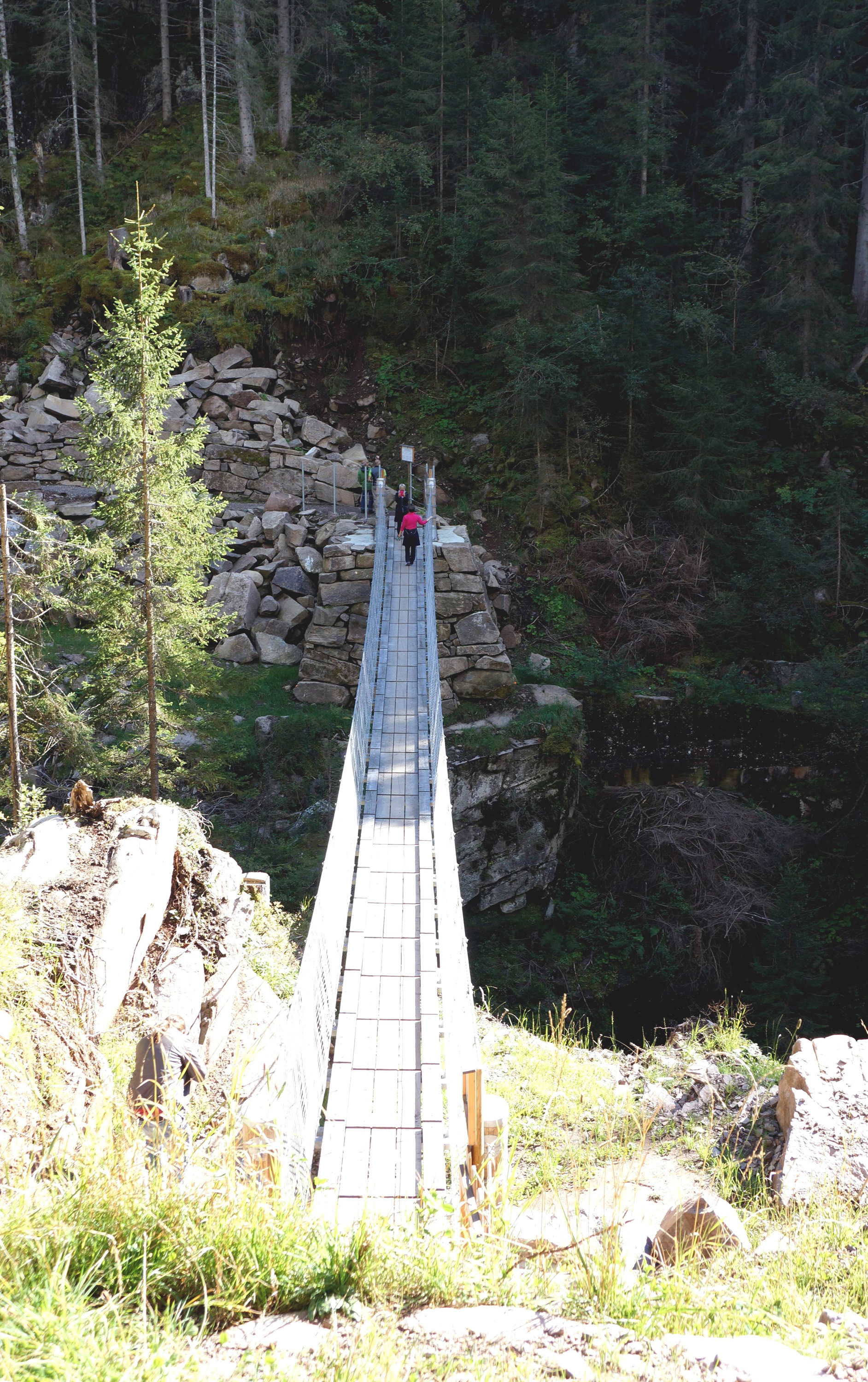 L'opera inaugurata oggi, alla presenza di molti cittadini attratti dalla novità, dalla sindaca di Predazzo Maria Bosin, con la sua assessora competente Chiara Bosin, del dirigente del Servizio per il Sostegno Occupazionale e la Valorizzazione Ambientale Innocenzo Coppola, e di numerose altre autorità, è stata realizzata a pochi chilometri da Predazzo, in una zona boscosa in località Sottosassa, raggiungibile con una strada sterrata. Essa consiste nell'attraversamento del torrente Travignolo con un ponte sospeso di tipo tibetano di una lunghezza di 40 metri, sostenuto da quattro robuste funi portanti saldamente ancorate al terreno tramite plinti in calcestruzzo e tiranti di acciaio inseriti in profondità nella roccia. Si cammina su un tavolato in legno di larice, fissato a sostegni in acciaio, con larghezza sufficiente per il passaggio di una persona alla volta.