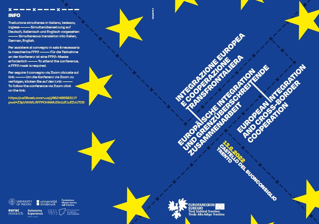 Dopo tre webinar preparatori, dedicati a coesione territoriale, sociale ed economica, il GECT/Euregio Tirolo-Alto Adige-Trentino, in collaborazione con EURAC Research, Università di Innsbruck, Università di Trento e Fondazione Museo storico del Trentino, organizza un evento finale per tirare le fila delle riflessioni emerse in quelle occasioni. Nell’ambito delle iniziative per il Cinquantenario del Secondo Statuto d’Autonomia della Regione Trentino-Alto Adige/Südtirol, la conferenza del 13 giugno si propone di analizzare lo stato dell’arte nel campo dell’integrazione e della cooperazione transfrontaliera per sviluppare le politiche del futuro.