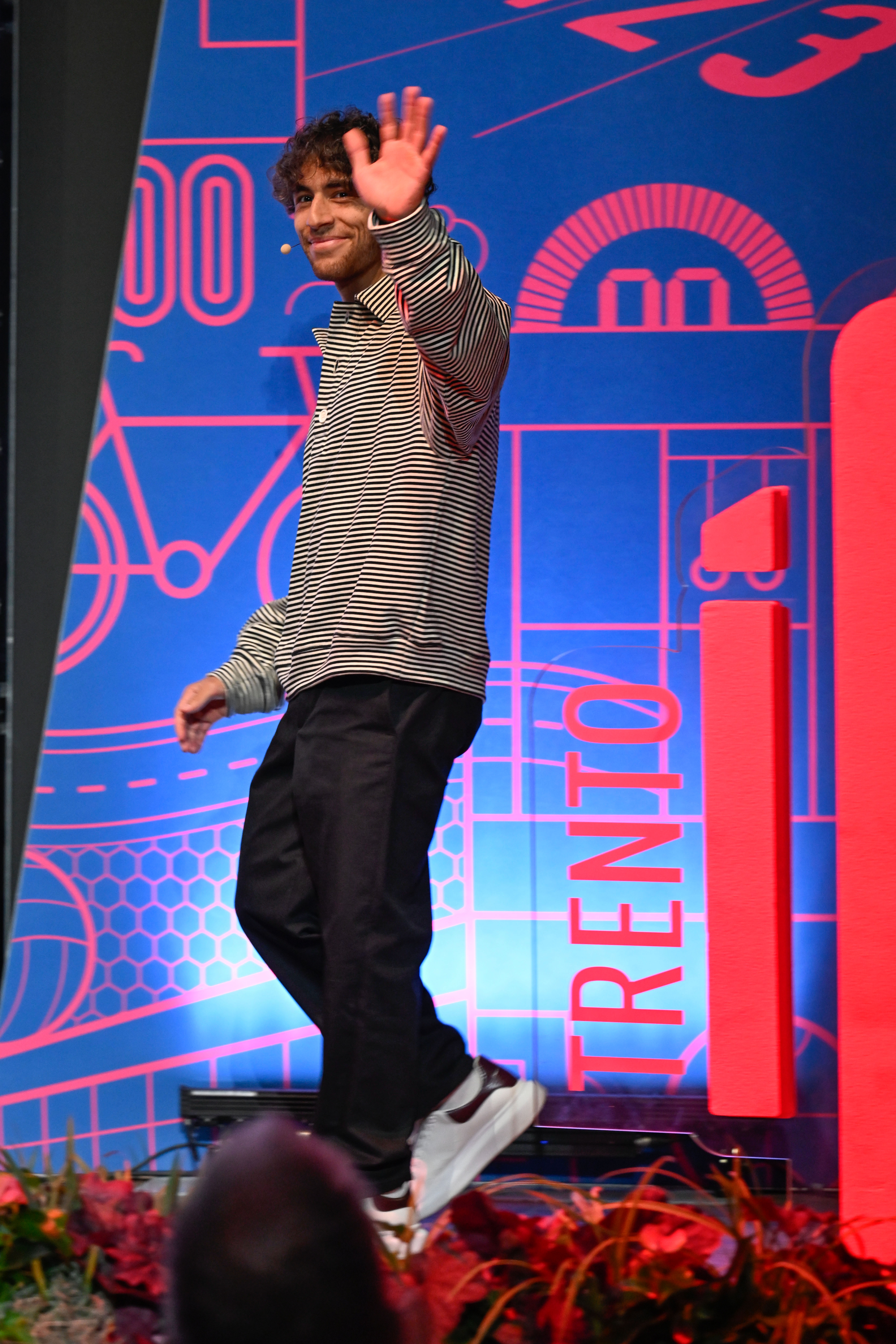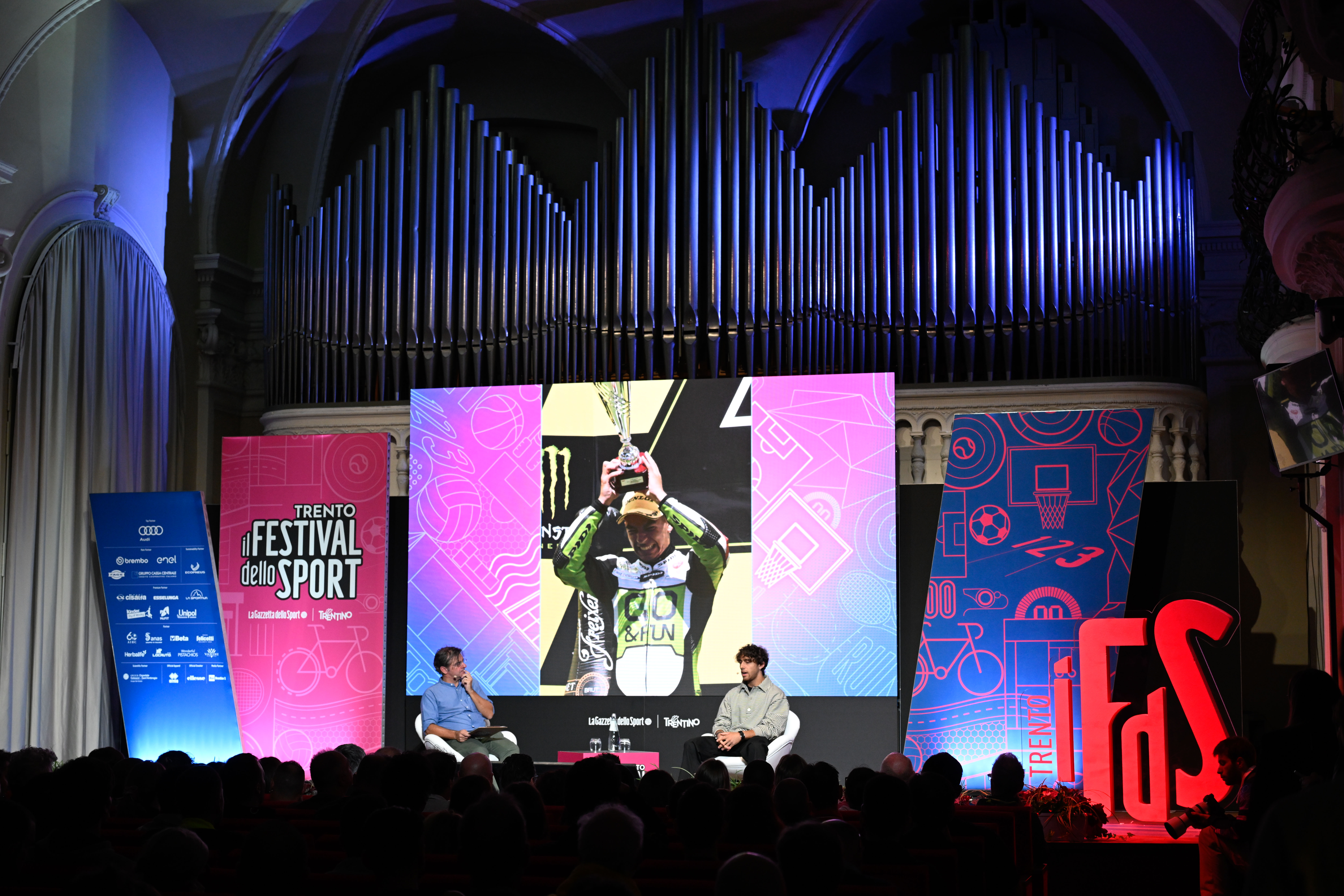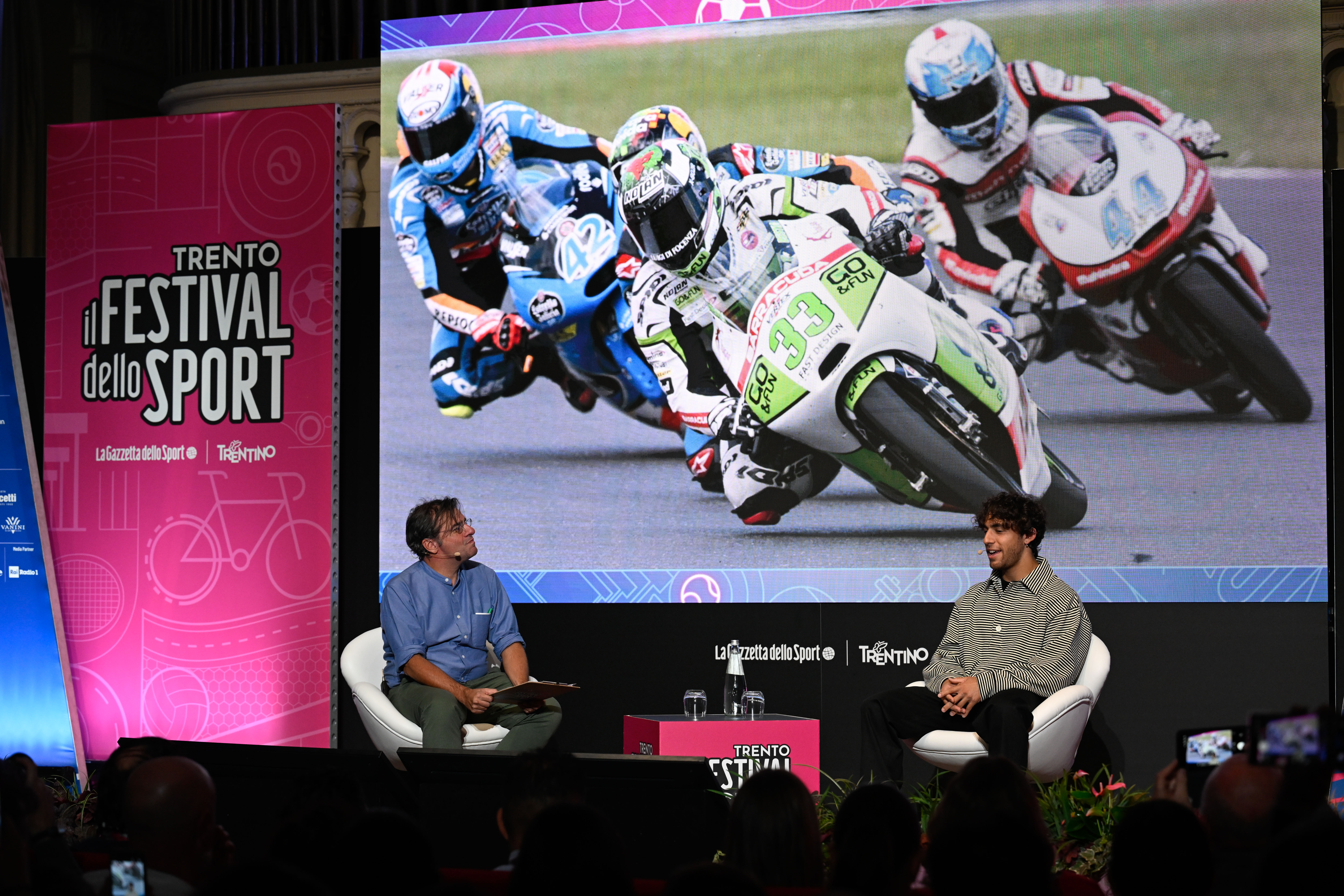Anche per non pensare a questo 2025, in KTM “partito male. Lo sapevamo ma non pensavo così tanto. Male.” Un anno sacrificale. Da archiviare così. Mentre guarda al futuro il Bestia. Che ascolta musica classica, passione trasmessa dalla fidanzata, mentre le sue di sempre sono Harry Potter e la pesca. Un Bestia che sorprende. Non solo pieghe e motori. Ma qui la sorpresa nella serata di Trento è per lui. Quando sul palco arriva Sebastiano Brunelli campione mondiale di Pesca. Che lo raggiunge e lo sfida in una prova di lancio verso la platea. Dall’esito, però, a noi ancora sconosciuto.