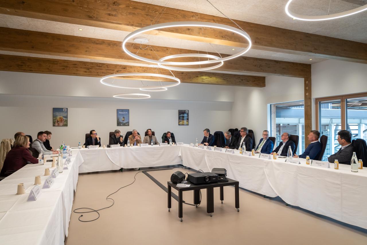 Nel corso della mattinata si è svolta una tavola rotonda dedicata ai settori produttivi locali, con la partecipazione dei rappresentanti delle principali realtà economiche e delle organizzazioni di categoria del territorio, evidenziando un’attenzione condivisa sui temi dello sviluppo e della competitività. Il momento di confronto ha consentito di mettere in luce istanze, criticità e prospettive dei settori interessati, favorendo un dialogo diretto tra istituzioni e sistema produttivo locale. Oltre al vicepresidente Spinelli e al presidente dell’Ice Zoppas sono intervenuti anche il presidente del Consorzio Melinda e dell'Associazione produttori ortofrutticoli trentini, Ernesto Seppi, il presidente della Federazione trentina della Cooperazione, Roberto Simoni, il presidente della Camera di Commercio di Trento, Andrea De Zordo, il presidente di Confindustria Trento, Lorenzo Delladio.