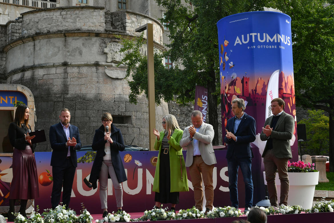 A una settimana dalla prima apertura del mercato di piazza Mostra, è stata inaugurata ufficialmente la quinta edizione di "Autumnus", il festival che mira a valorizzare e promuovere le eccellenze enogastronomiche del territorio trentino. La kermesse, che coinvolge direttamente centinaia di aziende locali, con una fitta agenda di appuntamenti dedicati a degustazioni, approfondimenti, laboratori e show-cooking, è organizzata dalla Pro Loco Centro storico di Trento, con il sostegno della Provincia autonoma di Trento, di Trentino Marketing e del Comune di Trento. Assieme al presidente della Pro Loco, Marco Lazzeri, hanno partecipato alla cerimonia di apertura il presidente della Provincia, Maurizio Fugatti, l'assessore all’agricoltura, promozione dei prodotti trentini, ambiente, difesa idrogeologica ed enti locali, Giulia Zanotelli, e la vicesindaco di Trento, Elisabetta Bozzarelli.