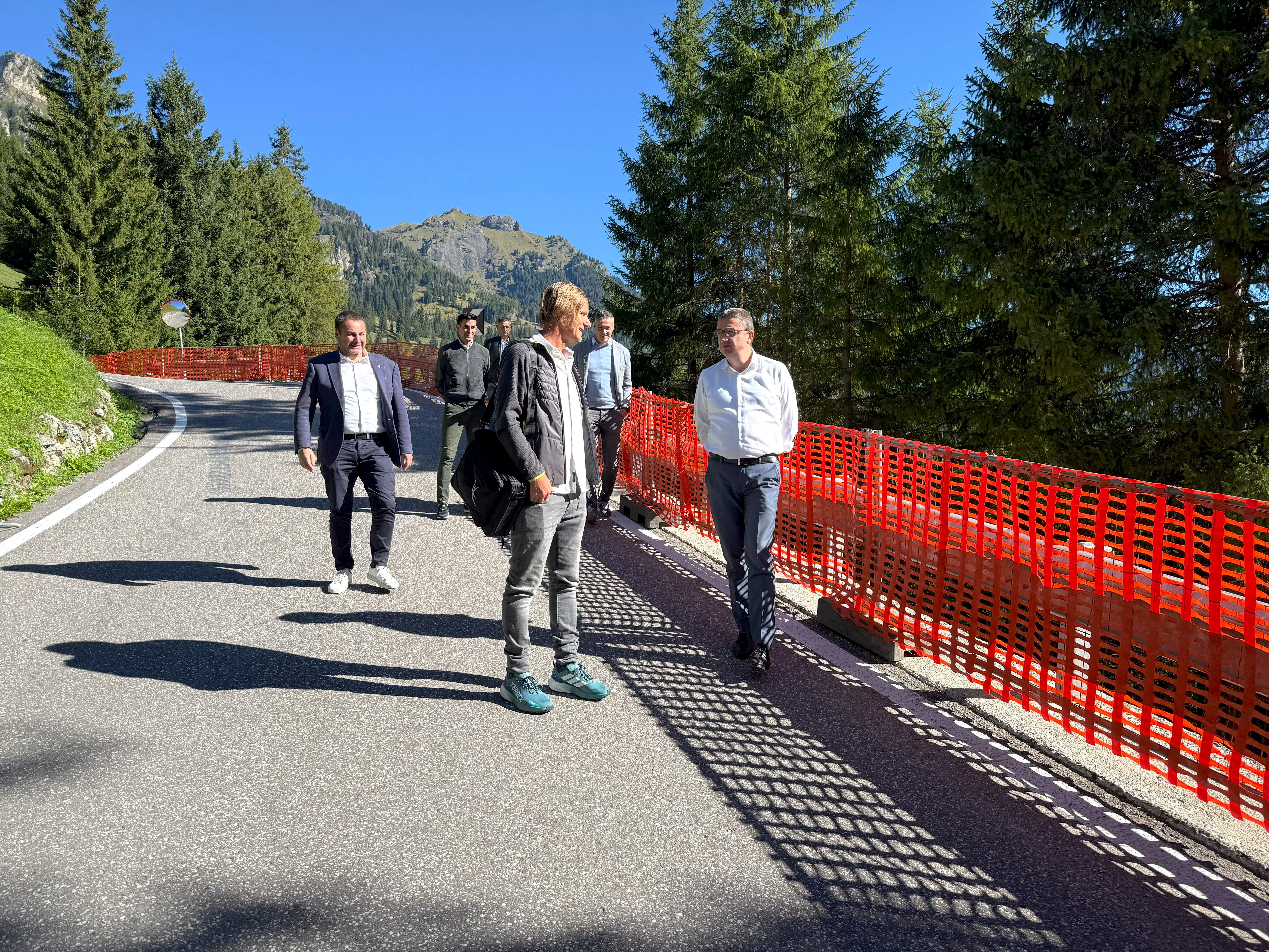 A veder l cantier l era ence l Procurador del Comun General de Fascia, Edoardo Felicetti, la Vizeprocuradora, Lara Battisti, e l conseier provinzièl Luca Guglielmi.