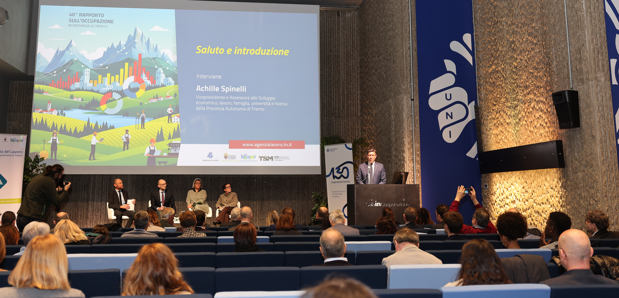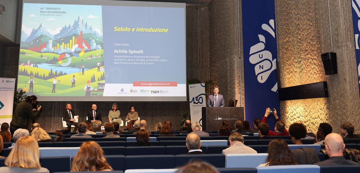 Il professor Riccardo Salomone, presidente di Agenzia del Lavoro, ha evidenziato come il quadro sia stabile, in una crescita che si presenta ancora di un certo rilievo. Due gli elementi di criticità evidenziati da Salomone: la tendenza all'aumento dell'occupazione part time e a termine rispetto al lavoro a tempo indeterminato e la difficoltà delle imprese a trovare competenze e professionalità adeguate. "Ci sono, dunque, - ha spiegato Salomone - due versanti su cui intervenire. Il primo versante è innalzare la qualità del lavoro, ovvero il modo in cui le imprese reclutano e governano i rapporti di lavoro, anche dal punto di vista retributivo. Il secondo versante, su cui l'Amministrazione trentina deve impegnarsi, è quello di aiutare le imprese a colmare lo squilibrio fra domanda e offerta di lavoro".