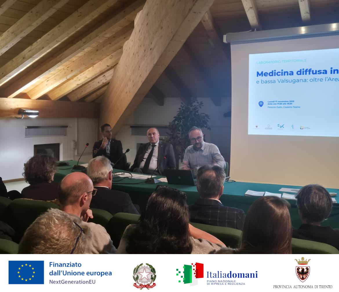 Un incontro con la comunità, gli operatori sanitari e gli amministratori di Tesino e Bassa Valsugana, per restituire i risultati raggiunti ed illustrare i modelli organizzativi sperimentati sul territorio, le iniziative e le attività intraprese nel percorso Area Interna Tesino e discutere delle prospettive future, in continuità con le azioni previste dal DM 77 e dal PNRR per la sanità territoriale. Palazzo Gallo, a Castello Tesino, ha ospitato ieri il momento conclusivo del progetto “Area Interna Tesino – Medicina diffusa ed assistenza inclusiva”, promosso nell’ambito della Strategia Nazionale Aree Interne (SNAI) e realizzato tra il 2019 ed il 2025 dalla Provincia autonoma di Trento insieme ad Azienda provinciale per i servizi sanitari e TrentinoSalute4.0. Un percorso che ha portato il Tesino a diventare laboratorio provinciale di innovazione, anticipando elementi oggi centrali nel riordino della sanità territoriale: prossimità, multiprofessionalità, lavoro in rete, uso integrato del digitale.