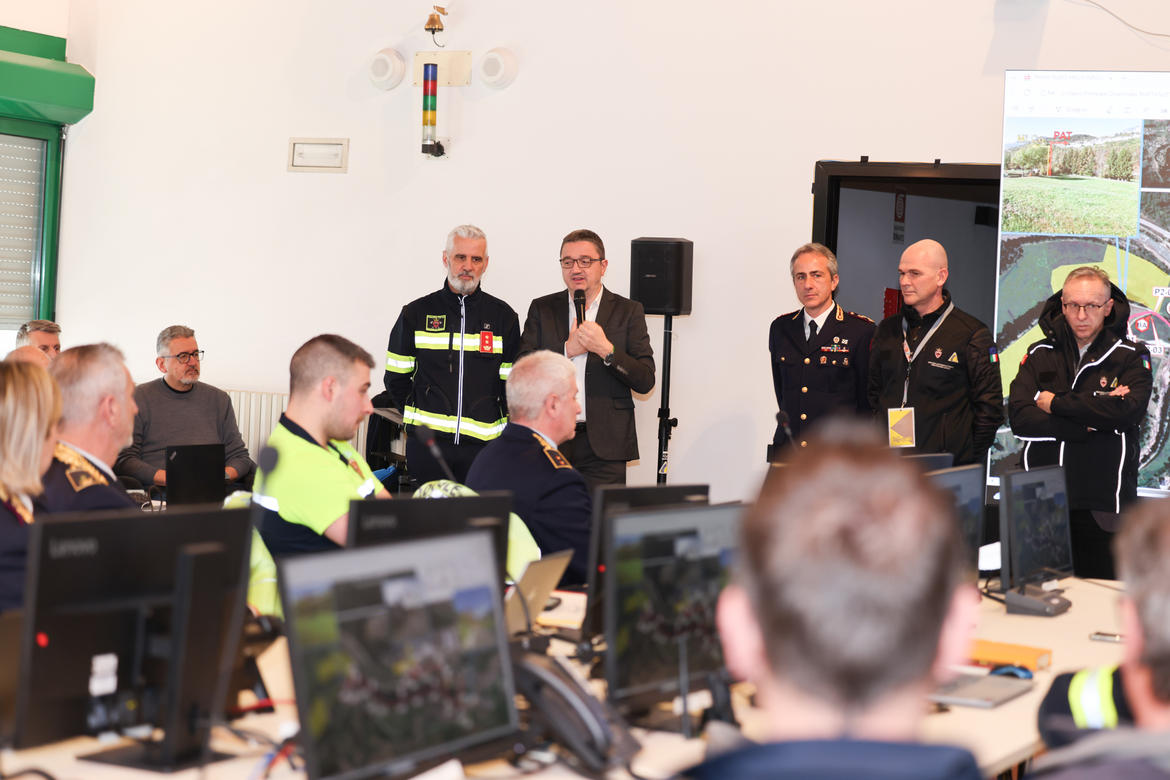 “Vedere oggi questa sala piena, restituisce pienamente il senso della sua importanza – sono state le parole del dirigente generale Fait -. Qui dentro sono rappresentate tutte le componenti del sistema di Protezione civile, con l’obiettivo di semplificare il coordinamento, garantendo a tutti informazioni tempestive e condivise. All’interno della Sala operativa sono attive 47 postazioni che riuniscono volontariato, strutture provinciali, polizie locali, Corpo forestale e forze dell’ordine. Un sistema completo e complesso. “Questo risultato è frutto di un grande lavoro di squadra. Ringrazio tutte le componenti che hanno contribuito a rendere operativo questo sistema” ha concluso Fait.