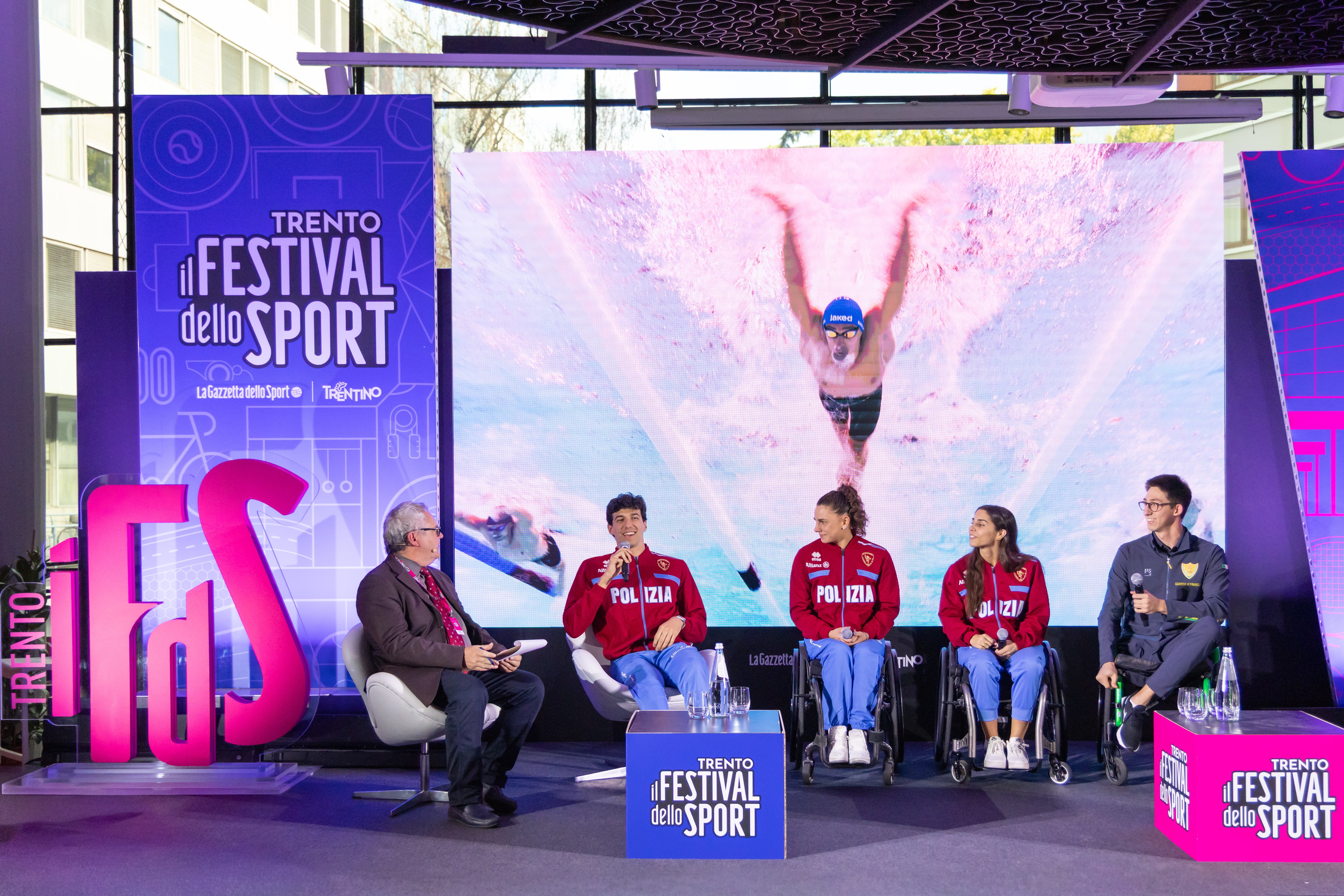 Al Festival dello sport di Trento i nuotatori paralimpici Giulia Ghiretti, Domiziana Mecenate, Alberto Amodeo e Simone Barlaam hanno raccontato i loro infortuni e le loro rinascite. I quattro atleti si sono confrontati portando le loro storie di successo oltre le fatiche e oltre le vittorie in cui l’acqua è ingrediente fondamentale che toglie il peso, rende liberi e leggeri. Hanno raccontato uno sport che si fa da soli ma in cui gli altri sono fondamentali come sostegno, guida, esempio.