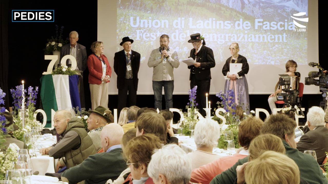 La Domenia del Rengraziament de chest an la é stata dedichèda ai 70 egn de la Union di Ladins de Fascia. Per l’ocajion l é stat fat na festa olache l é stat recordà i fondadores che i à sotscrit l prum statut: don Massimiliano Mazzel, Giacomo Jellici, Simone Sommariva e Giovanni Rizzi. Apede, l é stat portà dant i venjidores del concors “Let’s Stick Ladin”; na bela pissèda che co la vertola de n adesif l’à soscedà enteres, curiosità e devertiment a chela che à tout pèrt sacotenc gropes e n muie de joegn. L é amò da dir che per i 70 egn, l’Union l’à amò en program la prejentazion de n liber per contèr di fac e di avenimenc de sia storia.