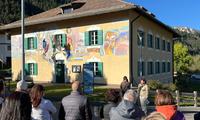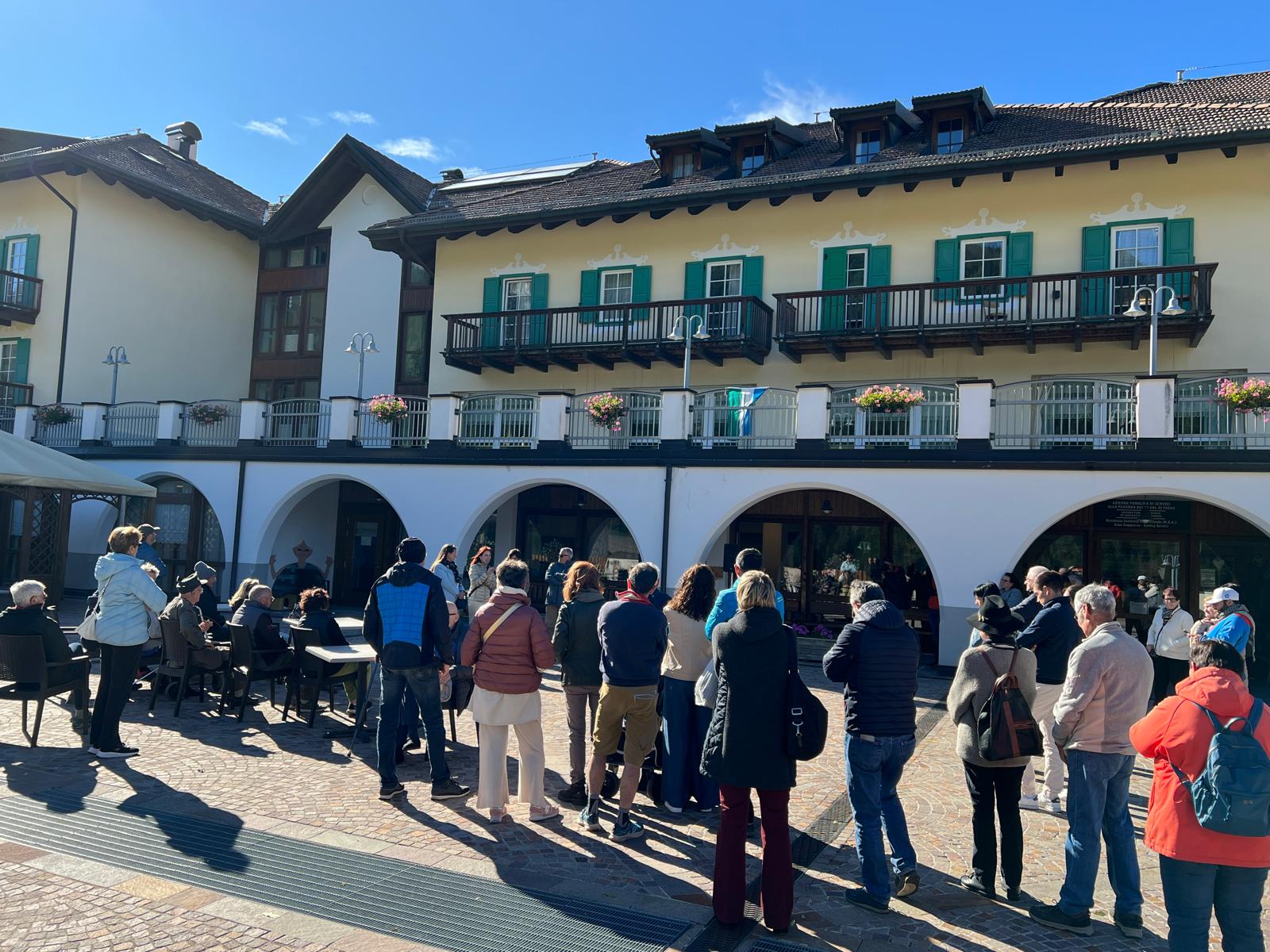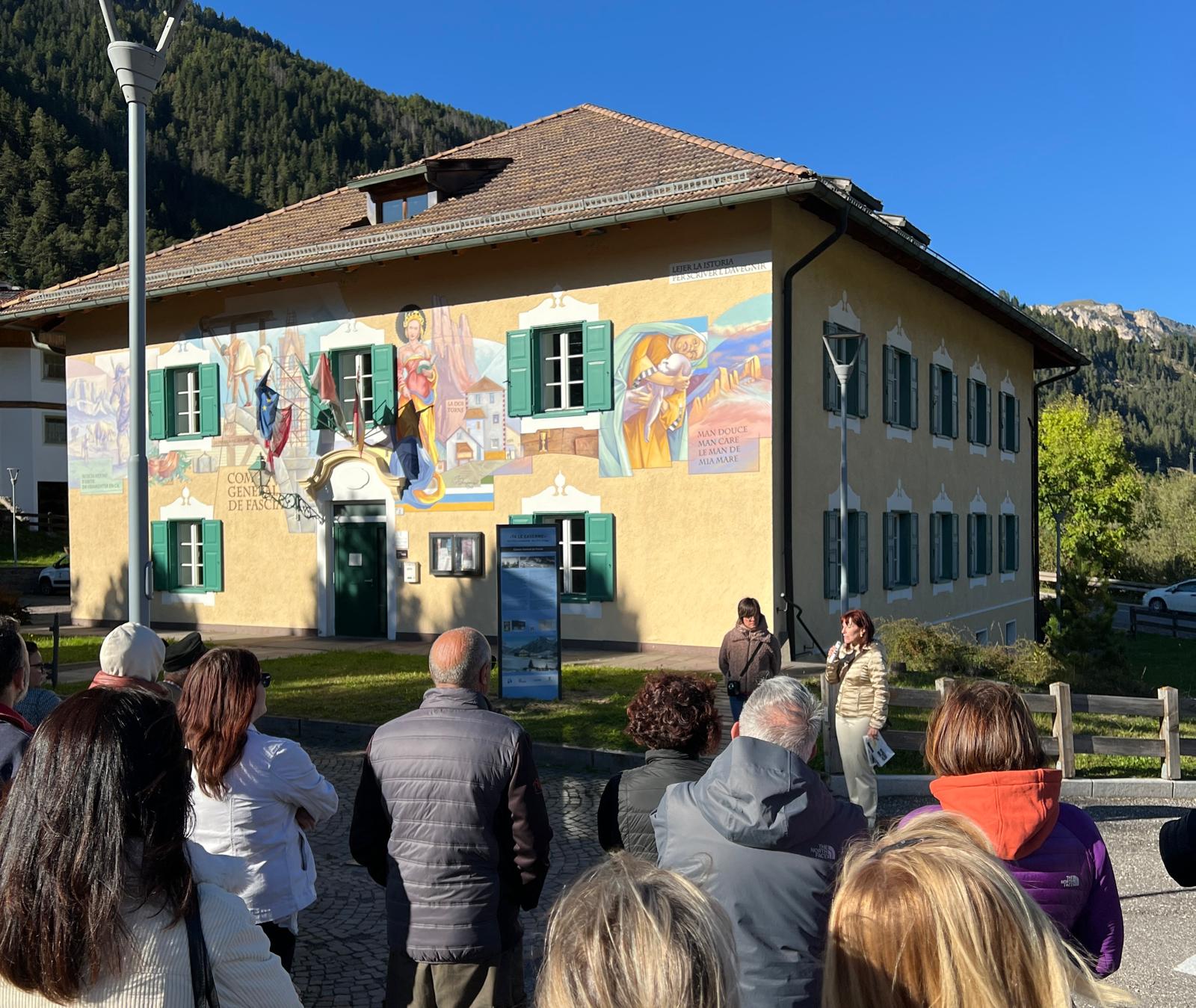 Il nutrito gruppo è stato poi guidato in un bel viaggio nel tempo che ha ripercorso la storia e le caratteristiche principali di ciascun edificio, ora riassunte, in italiano e in ladino, nei 6 totem, corredati da molte immagini d’epoca.