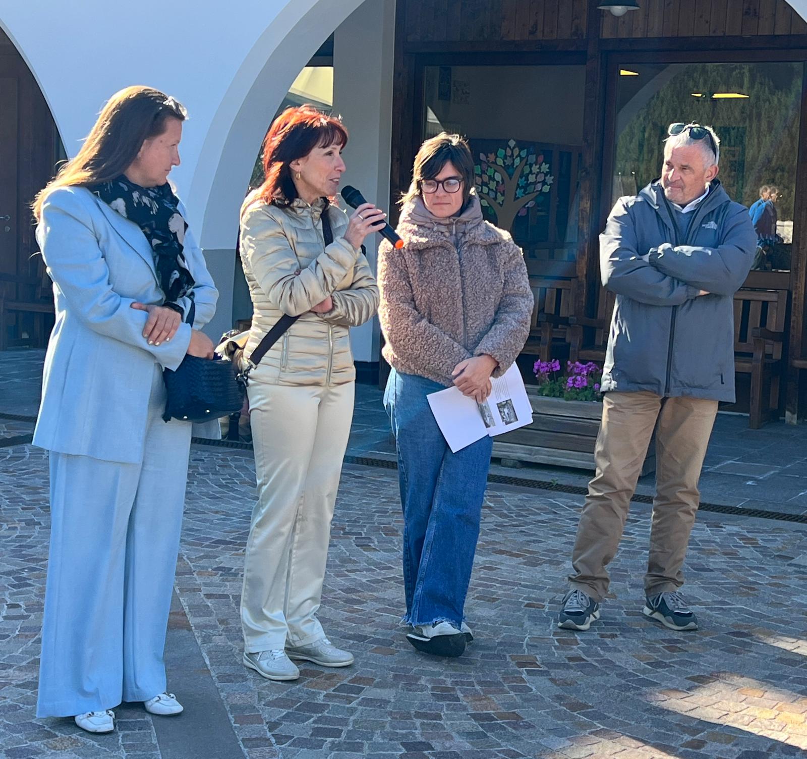 Nel piazzale dell’APSP, le due autrici dell’intero progetto, Daniela Brovadan del Museo Ladino di Fassa e Serena Pederiva della Casa di riposo di Fassa, hanno illustrato la loro ricerca storica, ringraziando anche tutti coloro che, a vario titolo, hanno collaborato al progetto, con immagini, documenti e testimonianze.