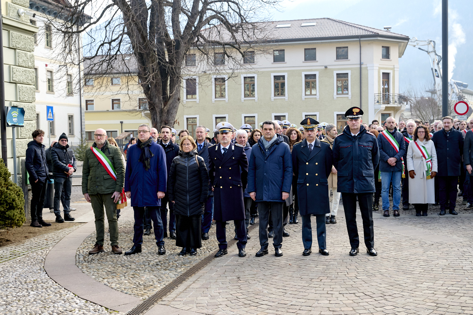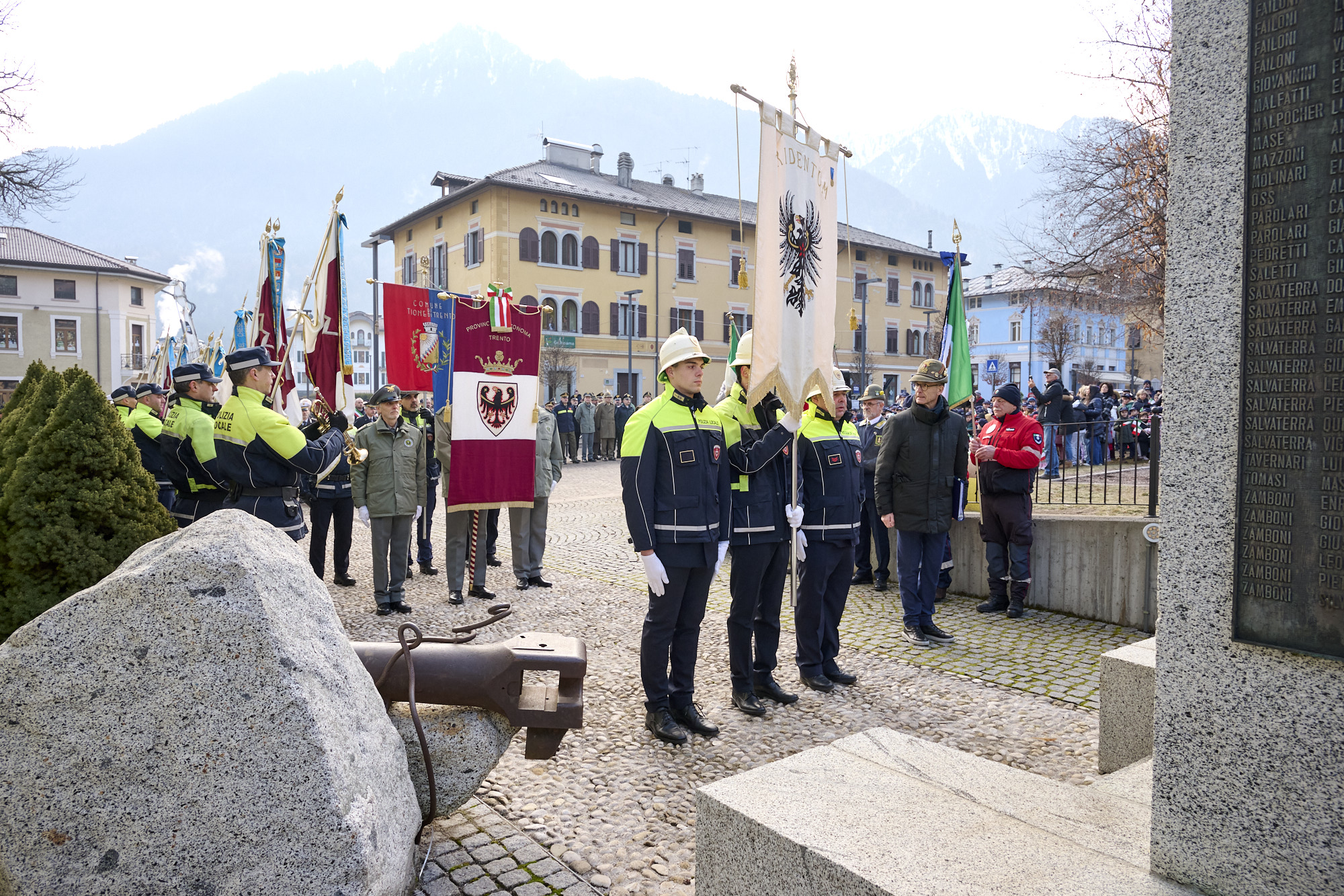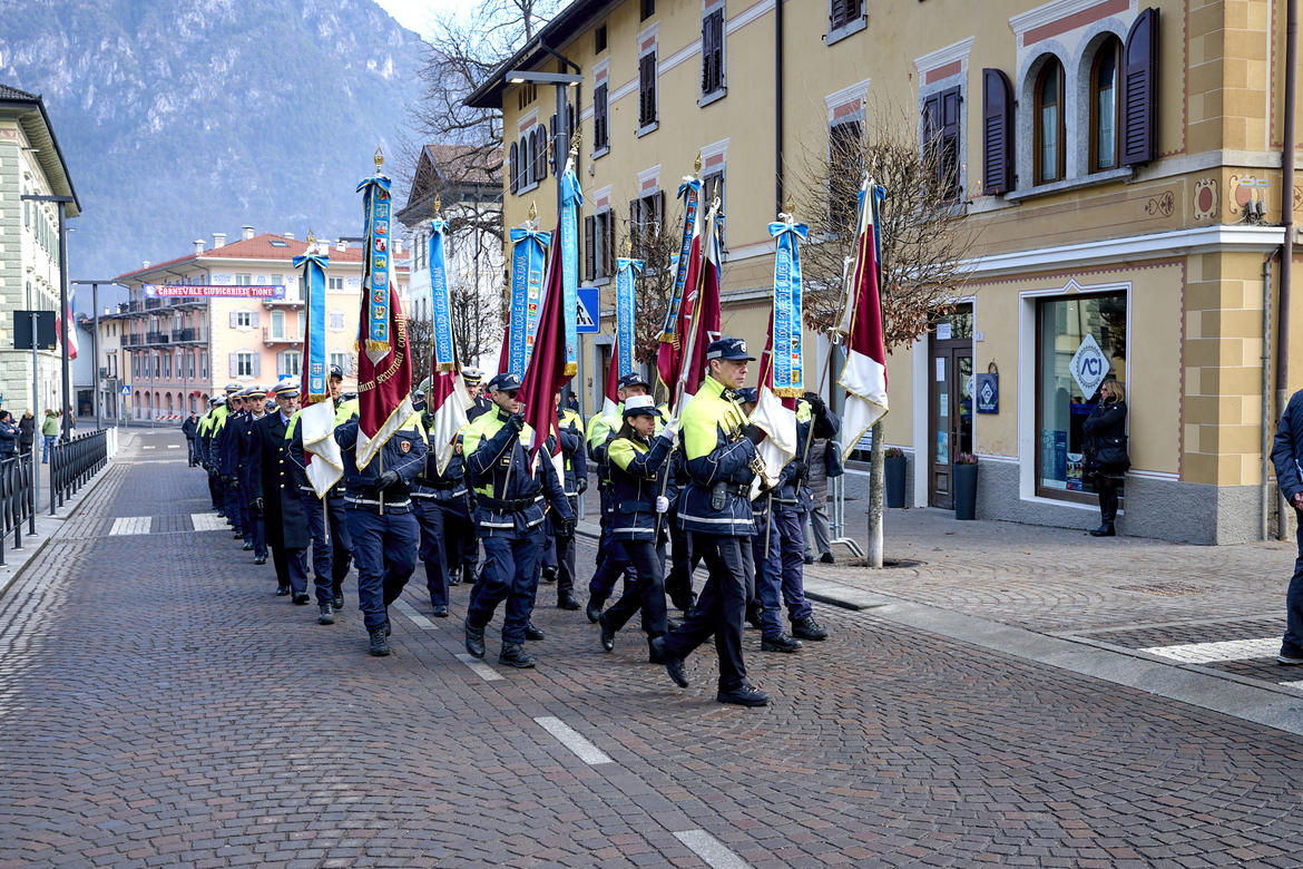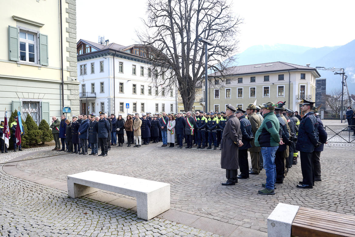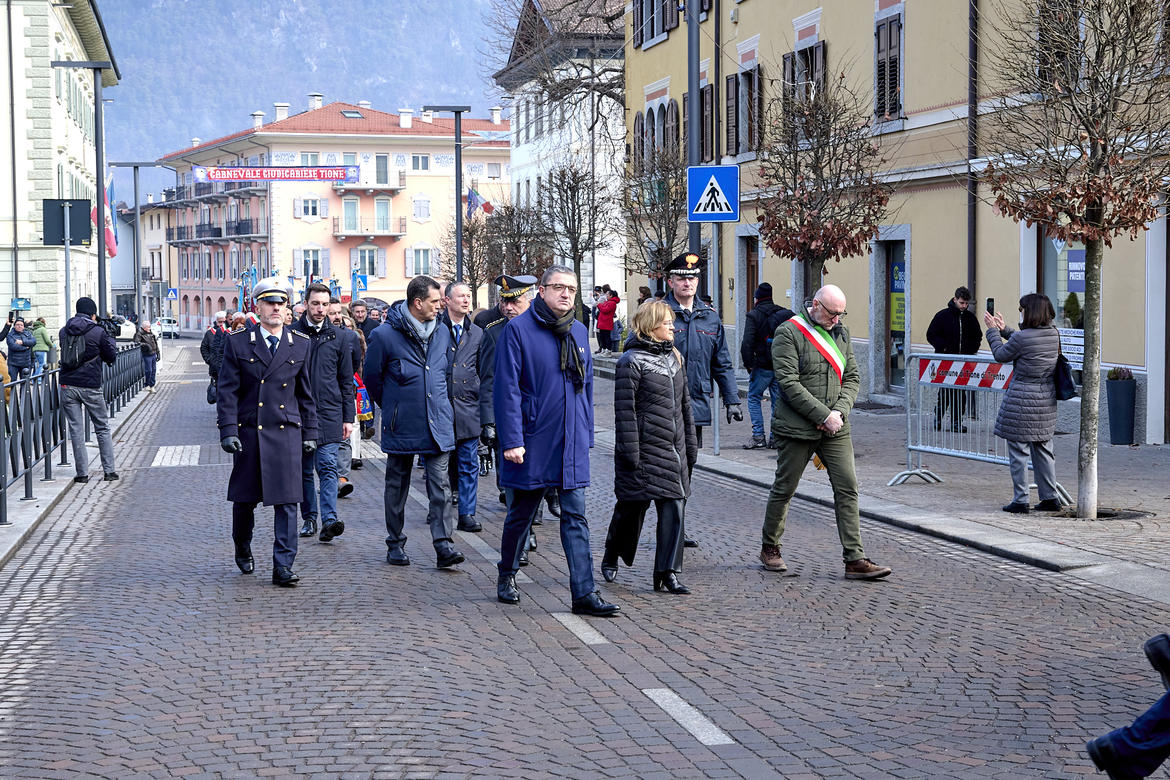 La cerimonia ha preso avvio alle ore 9.30, dopo l’ammassamento in piazza Cesare Battisti, con la partecipazione dei gonfaloni e delle autorità, nonché dei bambini della scuola d'infanzia e della scuola primaria di Tione, l'onore ai caduti con l'alzabandiera e la sfilata per le vie del paese con il maestro di cerimonia, luogotenente degli Alpini in congedo Vincenzo Fiumara, una rappresentanza della banda di Tione. Tantissimi i presenti: accanto al presidente della Provincia autonoma di Trento, Maurizio Fugatti, all'assessore all’urbanistica, energia, trasporti, sport e aree protette, Mattia Gottardi, e all'assessore alle politiche per la casa, patrimonio, demanio e promozione della conoscenza dell’Autonomia, Simone Marchiori, c'erano il Commissario del Governo per la provincia di Trento Isabella Fusiello, il presidente del Consiglio provinciale Claudio Soini, il presidente del Consorzio dei Comuni trentini Michele Cereghini, il sindaco di Tione Eugenio Antolini, il presidente della Comunità delle Giudicarie Giorgio Butterini, oltre a tantissimi sindaci del Trentino, consiglieri provinciali, rappresentanti delle forze dell'ordine, dell'Arma dei Carabinieri e della Guardia di Finanza.