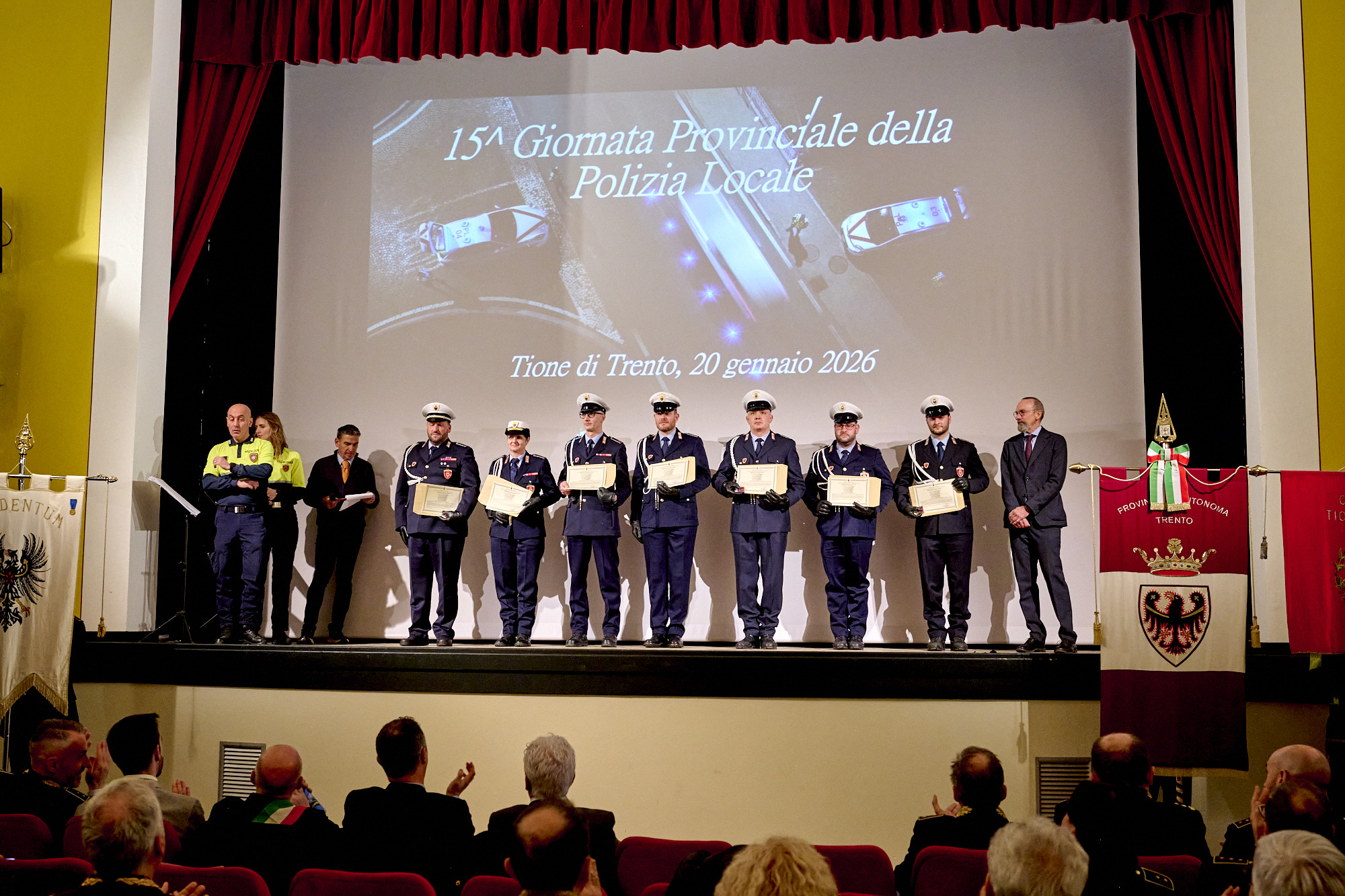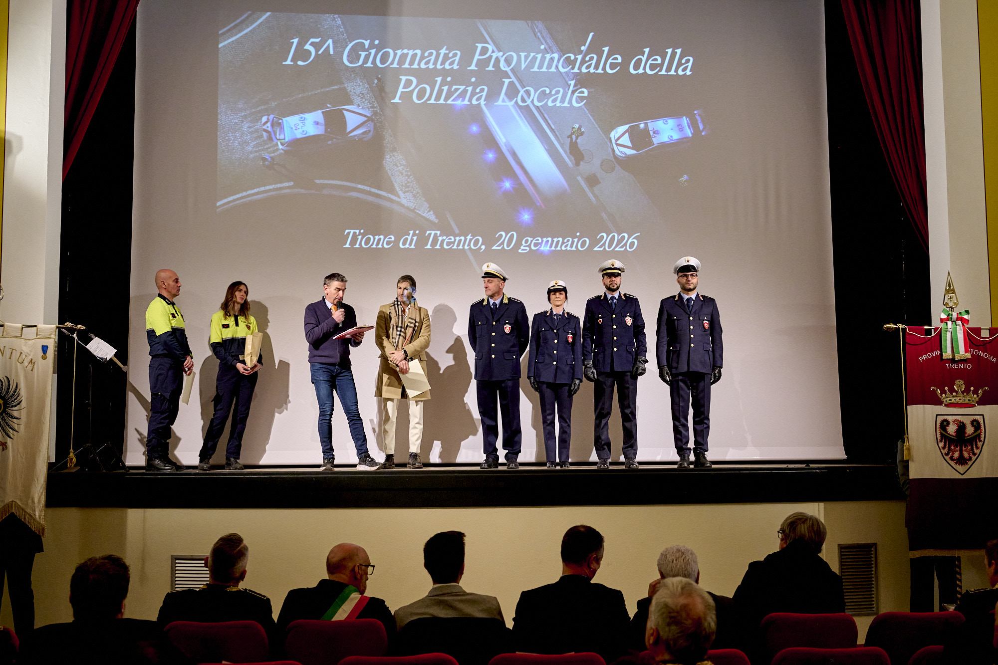 In apertura il sindaco Antolini ha parlato della polizia locale come "presidio quotidiano di legalità e sicurezza, tassello fondamentale delle forze dell'ordine", evidenziando l'importanza del loro ruolo anche "nel dialogo quotidiano coi cittadini", mentre il presidente del Consorzio dei Comuni trentini, Michele Cereghini, ha evidenziato come sia "centrale la revisione del Progetto sicurezza e dei criteri di finanziamento del servizio di Polizia locale" per rispondere alle esigenze reali dei territori e riconoscere le "diverse dimensioni organizzative, la complessità dei contesti, le forme di gestione associata e il crescente carico di responsabilità attribuito alla Polizia locale", e che "il Consorzio dei Comuni continuerà a svolgere un ruolo propositivo promuovendo il dialogo costante con la Provincia". Il presidente della Comunità delle Giudicarie Butterini ha ricordato la nascita, avvenuta 25 anni fa, del Corpo intercomunale delle Giudicarie e spiegato come la Polizia locale sia "parte integrante del servizio ai cittadini".