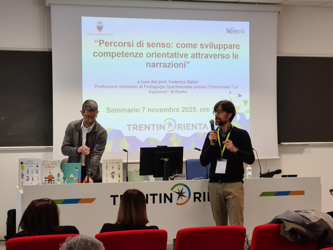 Particolare attenzione è stata dedicata ai contesti scolastici, dove la narrazione può essere integrata nelle attività didattiche quotidiane, promuovendo un orientamento non episodico ma continuo, diffuso e inclusivo. Sono stati presentati diversi strumenti e metodologie narrative replicabili. Il seminario ha inoltre sottolineato il ruolo cruciale degli adulti educanti, in particolare docenti e genitori, nel facilitare processi narrativi autentici e generativi, capaci di aiutare i ragazzi a trovare senso e direzione nelle proprie scelte. Infine, è stato rimarcato come la costruzione dell’identità e l’esplorazione attiva del futuro non siano processi lineari, ma ciclici e in continua evoluzione, che richiedono strumenti flessibili e un ambiente di fiducia in cui poterli attivare.