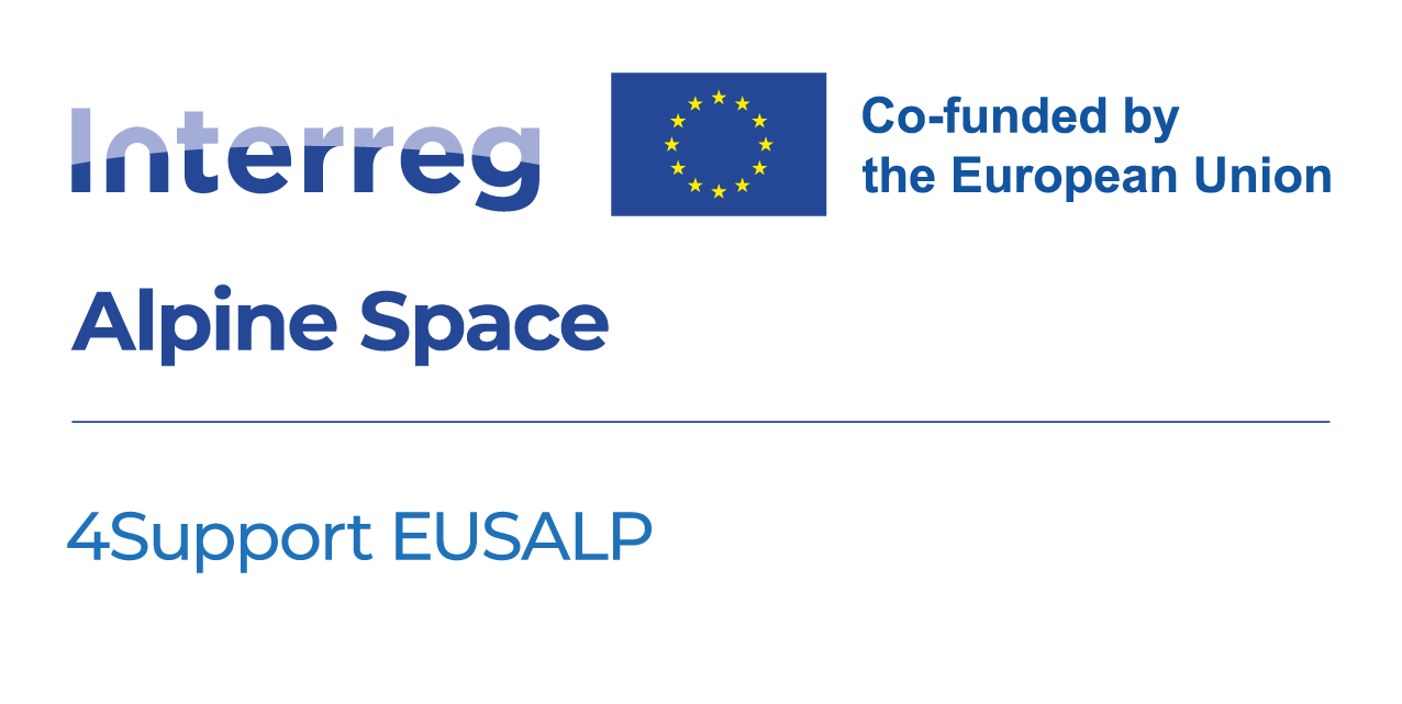 In virtù della leadership del Gruppo di Azione 3 di EUSALP, la Provincia autonoma di Trento è partner del progetto “4Support EUSALP” nell’ambito del Programma Interreg Spazio Alpino, come approvato a fine gennaio scorso dalla Giunta provinciale. Qui il comunicato stampa: https://www.ufficiostampa.provincia.tn.it/Comunicati/Via-libera-alla-partecipazione-del-Trentino-al-progetto-4Support-EUSALP.